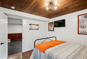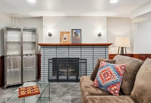 The basement provides additional living space, a generous storage area, a cozy fireplace, and an ensuite bedroom for added privacy and comfort.