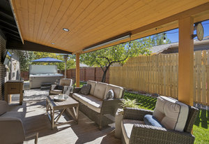 Inside, the home showcases stunning hardwood floors and an open flow that enhances the spacious feel. The kitchen is equipped with newer high-end appliances, making it a chef’s dream.