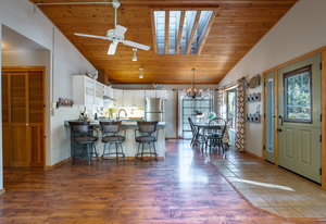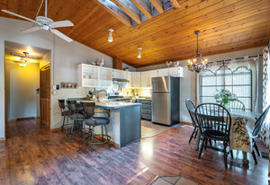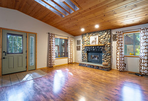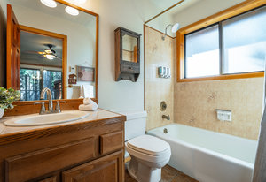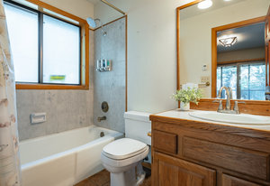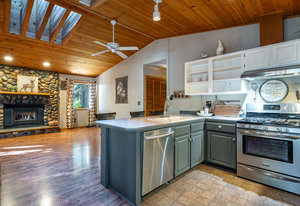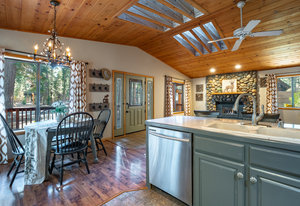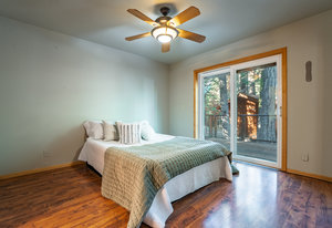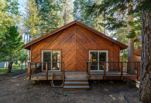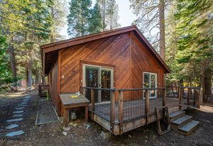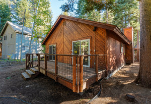 Rare single story home in short term rental friendly Placer County. This home features an open floorplan with vaulted ceilings and dazzling skylights. A beautiful rock fireplace with gas insert provides ambiance as well as convenient touch of the button heat. There are two ensuite bedrooms, each with an attached bathroom, closet and access to the back deck. Located on a level side street away from the highway, this house has easy year round access. Beaches at Chambers Landing and Meeks Bay offer sandy summer options at the lake. Forest trails through Sugar Pine Point State Park, the paved bike path, Ski Homewood, two country markets and marinas are also nearby.