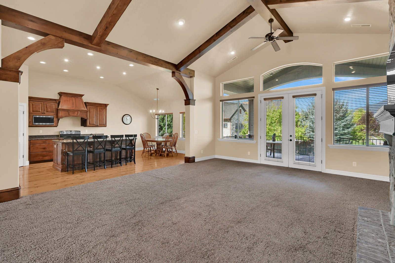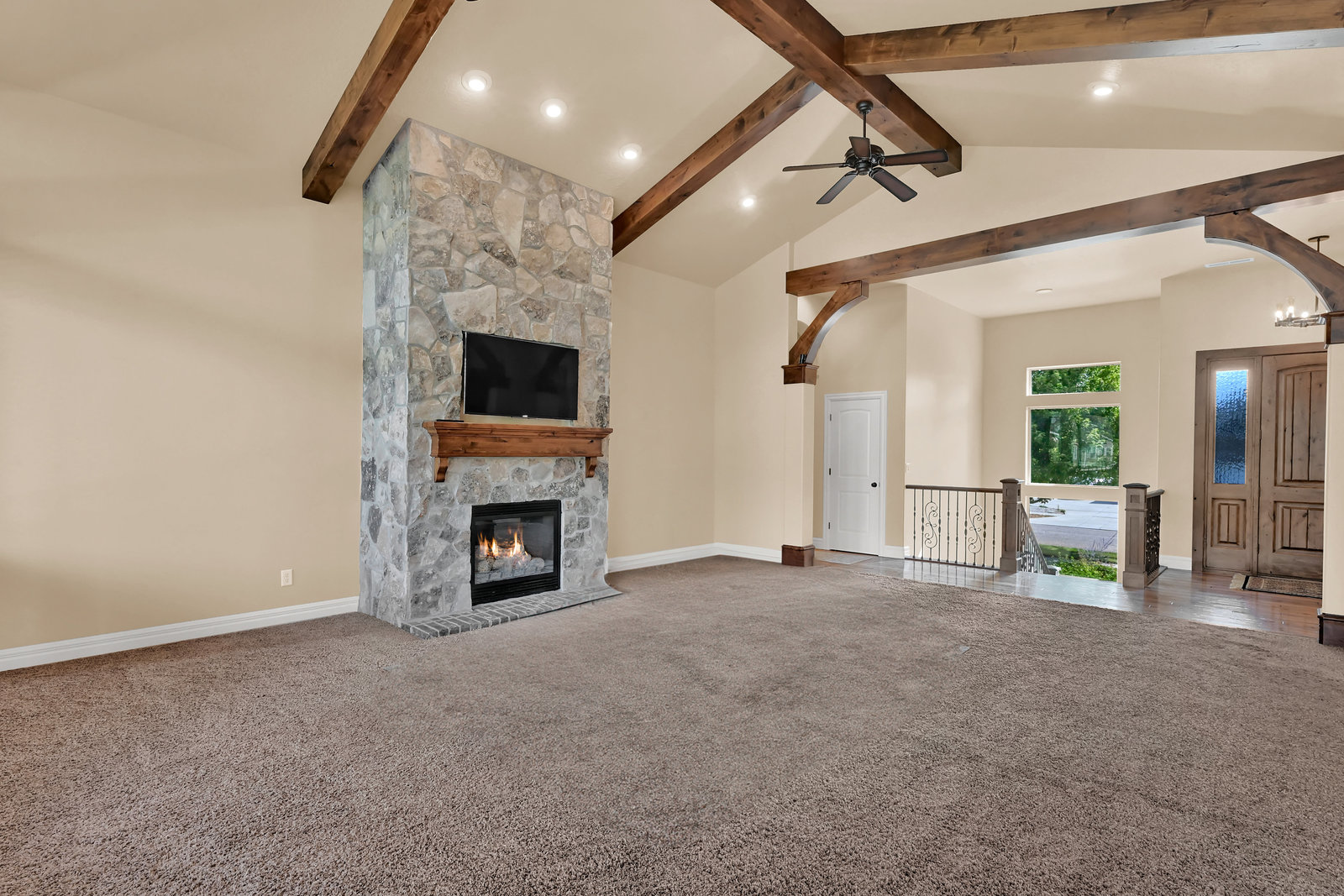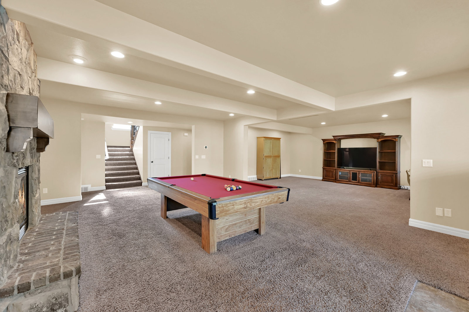 AN ASSUMABLE 2.5% VA LOAN IS AVAILABLE WITH QUALIFICATIONS. Welcome to this beautiful custom-home in the highly-sought-after Rollings Ranch neighborhood in Mountain Green. Luxury homes, tree-lined streets, walking paths, and hiking trails just out your front door makes this neighborhood a premier location in the area. The quality architecture, elegant landscaping, mature trees, lush lawn and exterior stone finishes provide all the curb-appeal you would desire from this 4,954 sf custom-built home. The quality and comfort of this home is apparent throughout. The vaulted ceilings, large custom beams and stone covered fireplace set the tone for the quality of the construction. The large, yet cozy, living room features oversized windows and french doors to bring in plenty of natural light and provide amazing views of Snowbasin and the Wasatch Mountains. The spacious covered deck offers plenty of shade for grilling, enjoying the outdoor dining area or just relaxing and taking in the mountain views. The main level owner's suite, home office with custom built-ins, main-floor laundry room and two additional bedrooms and bathrooms make up the main level. Downstairs is a formal living room, huge family room with an additional stone covered fireplace, more oversized windows, french doors to a covered patio, as well as an additional bedroom and bathroom. A large storage room and a large unfinished room in the basement provides massive amounts of storage space or the opportunity to customize to suit your needs. Maybe additional bedrooms, a home gym, another home office or just simply leave as a storage room. The three-car garage provides extra height and length allowing for plenty of room to store all of the toys. An additional pad alongside the garage provides an RV parking pad as well as a basketball hoop for some outdoor fun.Home features two A/C units and zones; two furnaces and zones; two water heaters, wired for hot tub. This mountain community boasts a new retail center and Lee's Marketplace just a short walk or bike ride down the road. Mountain Green is a growing mountain town that is a mere 38 miles from Salt Lake City International Airport and is just minutes from Snowbasin and a short drive to Powder Mountain, Nordic Valley, several golf courses, and reservoirs! The home is located just 20 minutes to Ogden, and just a little over an hour to Park City. City close but country quiet!! The community feels like "Small Town USA" where folks still walk in the evenings and chat with neighbors. An assumable 2.5% VA loan is available with qualifications, see agent notes for balance and rate. The Square footage figures are provided as a courtesy estimate only and were obtained from County Records . Buyer is advised to obtain an independent measurement.