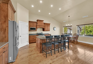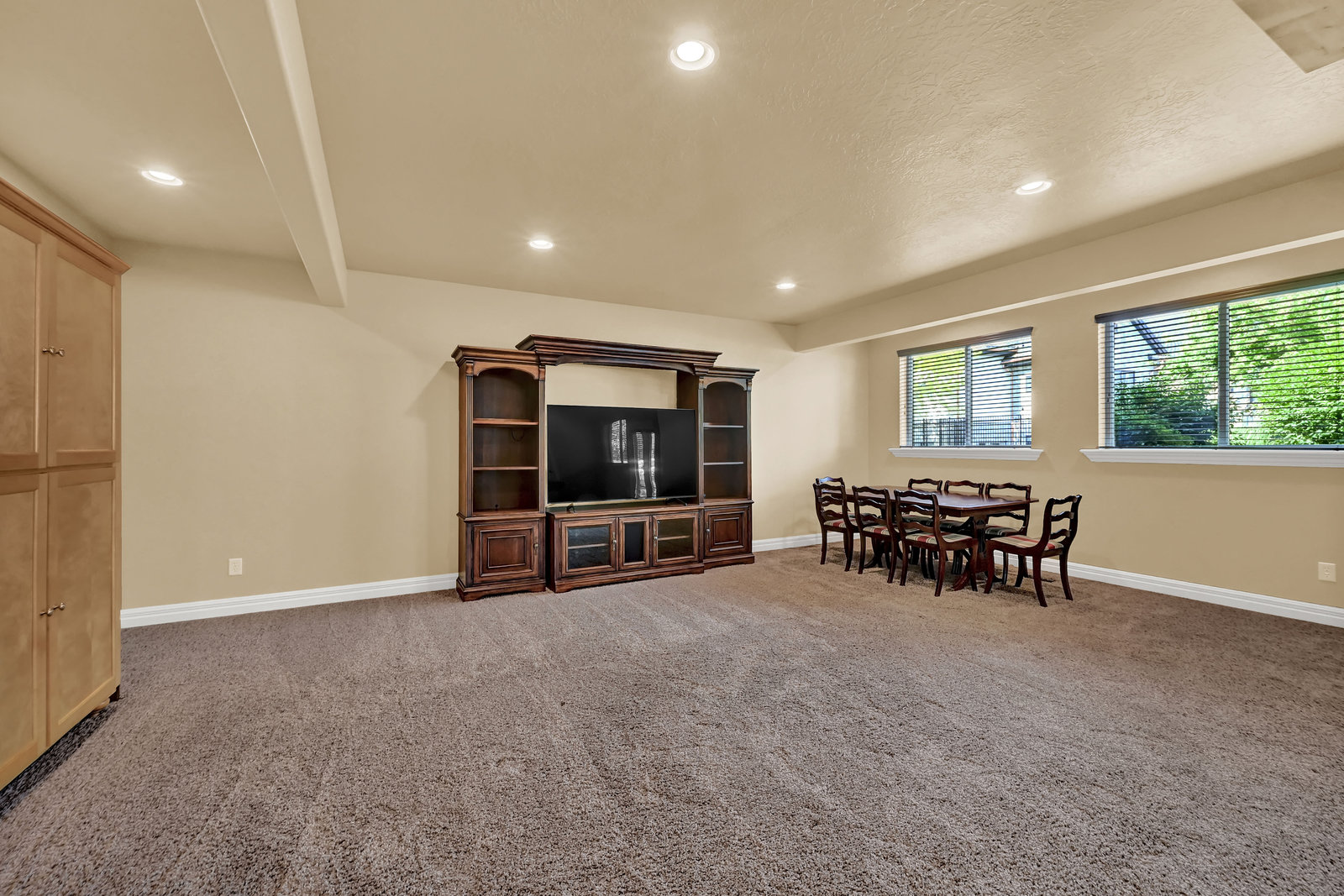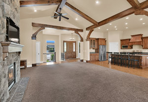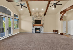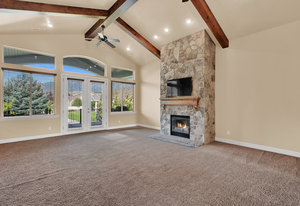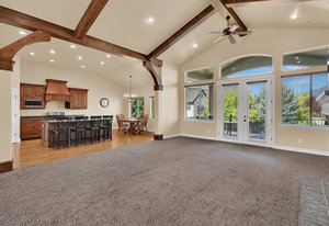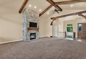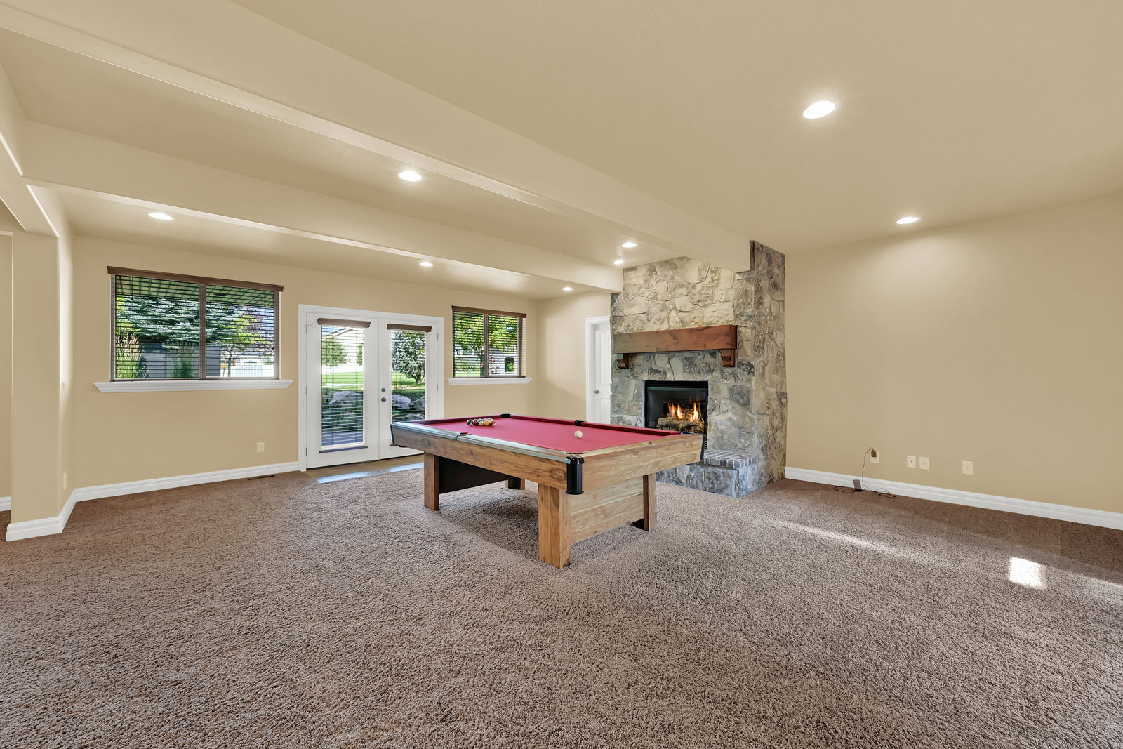 AN ASSUMABLE 2.5% VA LOAN IS AVAILABLE WITH QUALIFICATIONS. Welcome to this beautiful custom-home in the highly-sought-after Rollings Ranch neighborhood in Mountain Green. Luxury homes, tree-lined streets, walking paths, and hiking trails just out your front door makes this neighborhood a premier location in the area. The quality architecture, elegant landscaping, mature trees, lush lawn and exterior stone finishes provide all the curb-appeal you would desire from this 4,954 sf custom-built home. The quality and comfort of this home is apparent throughout. The vaulted ceilings, large custom beams and stone covered fireplace set the tone for the quality of the construction. The large, yet cozy, living room features oversized windows and french doors to bring in plenty of natural light and provide amazing views of Snowbasin and the Wasatch Mountains. The spacious covered deck offers plenty of shade for grilling, enjoying the outdoor dining area or just relaxing and taking in the mountain views. The main level owner's suite, home office with custom built-ins, main-floor laundry room and two additional bedrooms and bathrooms make up the main level. Downstairs is a formal living room, huge family room with an additional stone covered fireplace, more oversized windows, french doors to a covered patio, as well as an additional bedroom and bathroom. A large storage room and a large unfinished room in the basement provides massive amounts of storage space or the opportunity to customize to suit your needs. Maybe additional bedrooms, a home gym, another home office or just simply leave as a storage room. The three-car garage provides extra height and length allowing for plenty of room to store all of the toys. An additional pad alongside the garage provides an RV parking pad as well as a basketball hoop for some outdoor fun.Home features two A/C units and zones; two furnaces and zones; two water heaters, wired for hot tub. This mountain community boasts a new retail center and Lee's Marketplace just a short walk or bike ride down the road. Mountain Green is a growing mountain town that is a mere 38 miles from Salt Lake City International Airport and is just minutes from Snowbasin and a short drive to Powder Mountain, Nordic Valley, several golf courses, and reservoirs! The home is located just 20 minutes to Ogden, and just a little over an hour to Park City. City close but country quiet!! The community feels like "Small Town USA" where folks still walk in the evenings and chat with neighbors. An assumable 2.5% VA loan is available with qualifications, see agent notes for balance and rate. The Square footage figures are provided as a courtesy estimate only and were obtained from County Records . Buyer is advised to obtain an independent measurement.