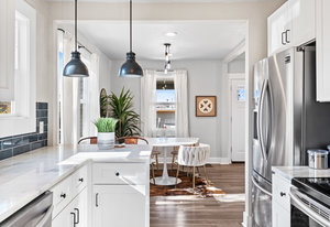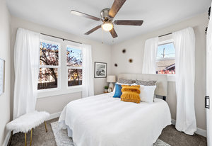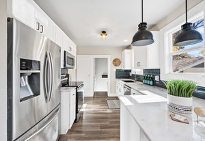 Main level features an open floor plan between the living room, dining room and kitchen. The kitchen boasts newer appliances, and eat-in counter space. There are also two bedrooms upstairs and a full bath. Downstairs features the primary bedroom and ensuite and an office, as well as a fourth non-conforming bedroom. The floorplan allows for separation, privacy and easy livability. Great price point for this amazing location, being close to Highlands Farmers Market, Tennyson Street, 2 parks and easy access to I-70. This is the ultimate Highlands lifestyle - walkable, charming and usable outdoor space!