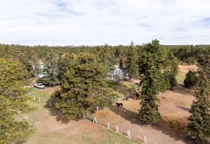Historic Pine Run Ranch of Black Forest situated on a rare 60 acre scenic park-like property with the perfect mixture of lush green meadows, towering mature ponderosa pines, large spring fed pond with draw that creates an amazing wildlife habitat. There are six homes as well as a professional horse boarding facility featuring two barns w/ one barn at 3,328 square foot w/ 15 indoor stalls, expansive indoor steel arena, 1,649 square foot workshop/tack building, 8 loafing sheds. Substantial and reliable income stream for a savvy investor - 5 of the homes are currently leased to long term tenants, one home is currently run as a successful vacation rental and the equestrian facilities are leased for boarding and training. Limitless potential for income growth w/ the possibility of adding a wedding venue. There are 16 beds and 10 baths spread across the 6 homes. Phenomenal close-in location w/ great access to amenities. The acreage is completely fenced w/ multiple paddocks and pastures. Two of the six homes are charming, turn of the century farmhouses that feature gorgeous architecture, wainscotting, crown molding and pastural settings that transport you back in time. The home that is currently used as a successful vacation rental is lovingly known as the lodge which has amazing style, exposed timber beam vaulted ceilings, rounded doorway, open entertaining spaces, cedar walls, granite counters, newer kitchen and bath w/ an abundance of natural light filled spaces from the clerestory windows. The current owners have invested substantial energy and funds to ensure the ranch is well maintained and updated w/ newer electrical, plumbing, painting, fencing, furnaces, water heaters, fiber optic internet installed, septic system, roofs, appliances, fixtures and well pumps. 5 homes and the barn have their own electric meters. This is a unique and rare opportunity to purchase a large acreage property in Black Forest w/ substantial built-in income. See this property quickly!