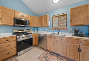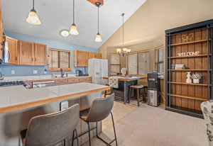 You get to drive through Deer Creek Valley, with Mt Rosalie as a backdrop, on your way to this private mountain home. Every part of the interior of this home is turn key... and there are several custom upgrades...one being the pendulum lights over the kitchen island.