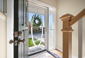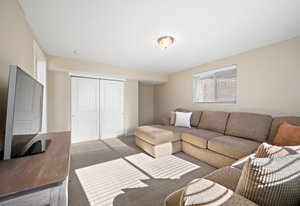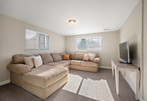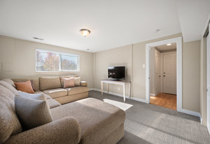 The lower level expands your living options with two conforming bedrooms—one currently utilized as a secondary living space—alongside a dedicated laundry area, access to a newer furnace and water heater, and a convenient storage closet beneath the stairs. Around the corner, entry to the oversized two-car attached garage adds everyday convenience.
