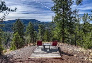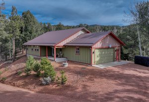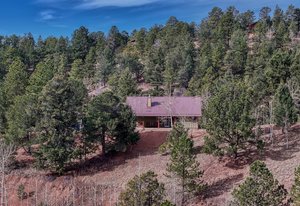 Escape to mountain serenity where a charming Colorado cabin offers up quiet mornings, wildlife sightings, and breathtaking views of Pikes Peak everyday. Nestled in the trees on 2 peaceful parcels in Divide, this 2-bedroom, 2-bath retreat offers the ideal balance of rustic character and modern comfort. The inviting open layout welcomes you with warm wood finishes, natural light, and a cozy great room that draws your eye to the mountain beyond. Whether you’re curling up by the woodstove in winter or opening the windows to a summer breeze, this home invites you to slow down and truly live in the moment. Step outside to experience what makes this property so special — a back porch perfect for morning coffee and grilling, a private front porch perfect for stargazing, and a separate viewing platform tucked away from the main house, ideal for quiet reflection, conversation, or simply taking in the grandeur of the Peak. Surrounded by evergreens and native landscape, you’ll enjoy visits from all sorts of wildlife wandering through. With two comfortable bedrooms and two baths, this home functions beautifully as a year-round residence or a weekend mountain getaway. Located just minutes from Divide and Woodland Park, you’ll have easy access to local shops, restaurants, and outdoor adventures — yet feel worlds away from the rush of daily life. If you’ve been dreaming of a lifestyle defined by fresh air, quiet mornings, and Colorado’s natural beauty, this is your invitation to come see The Cozy Cottage with a Big Colorado View. Set your sights on Pikes Peak from this warm and inviting cabin in Divide.
