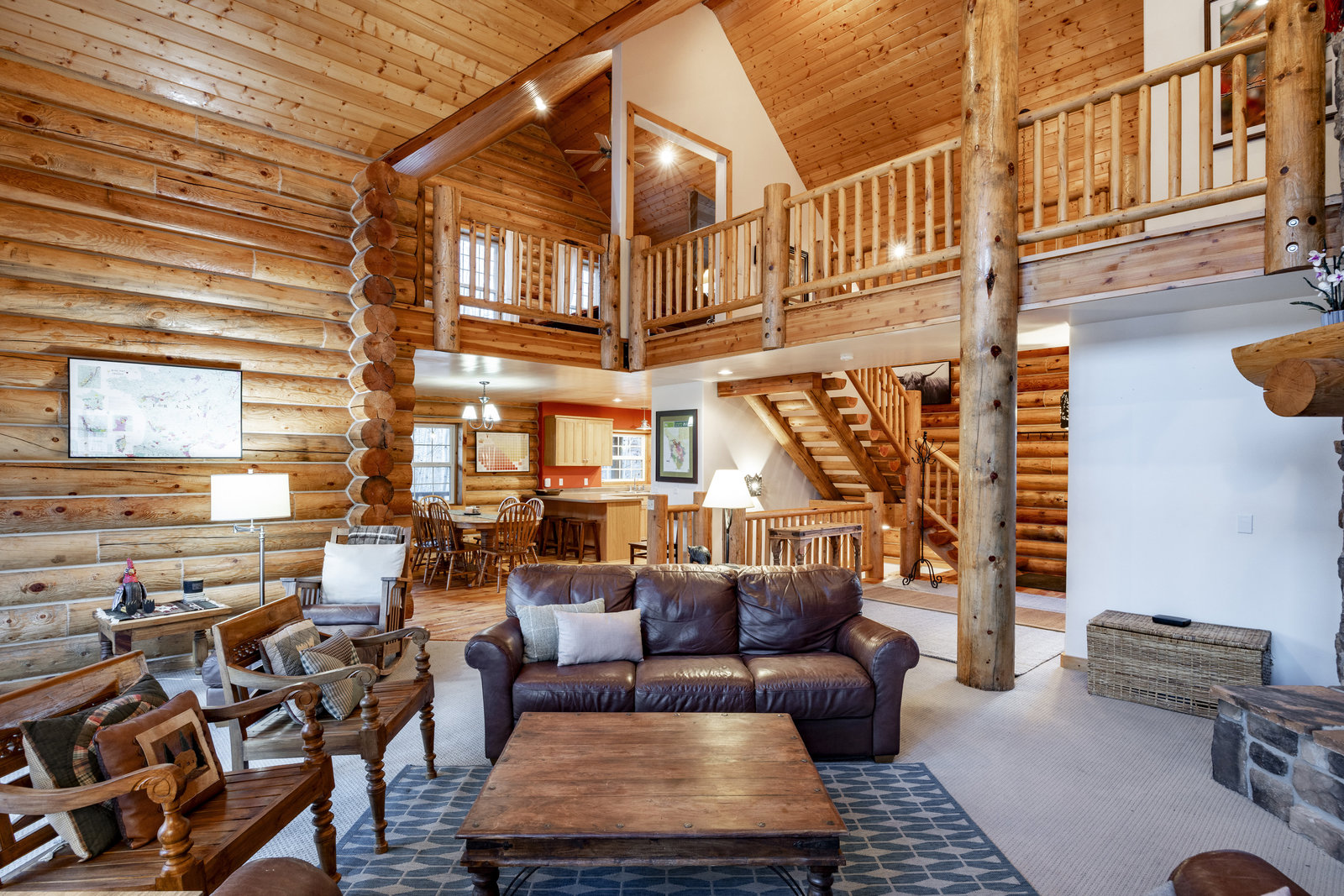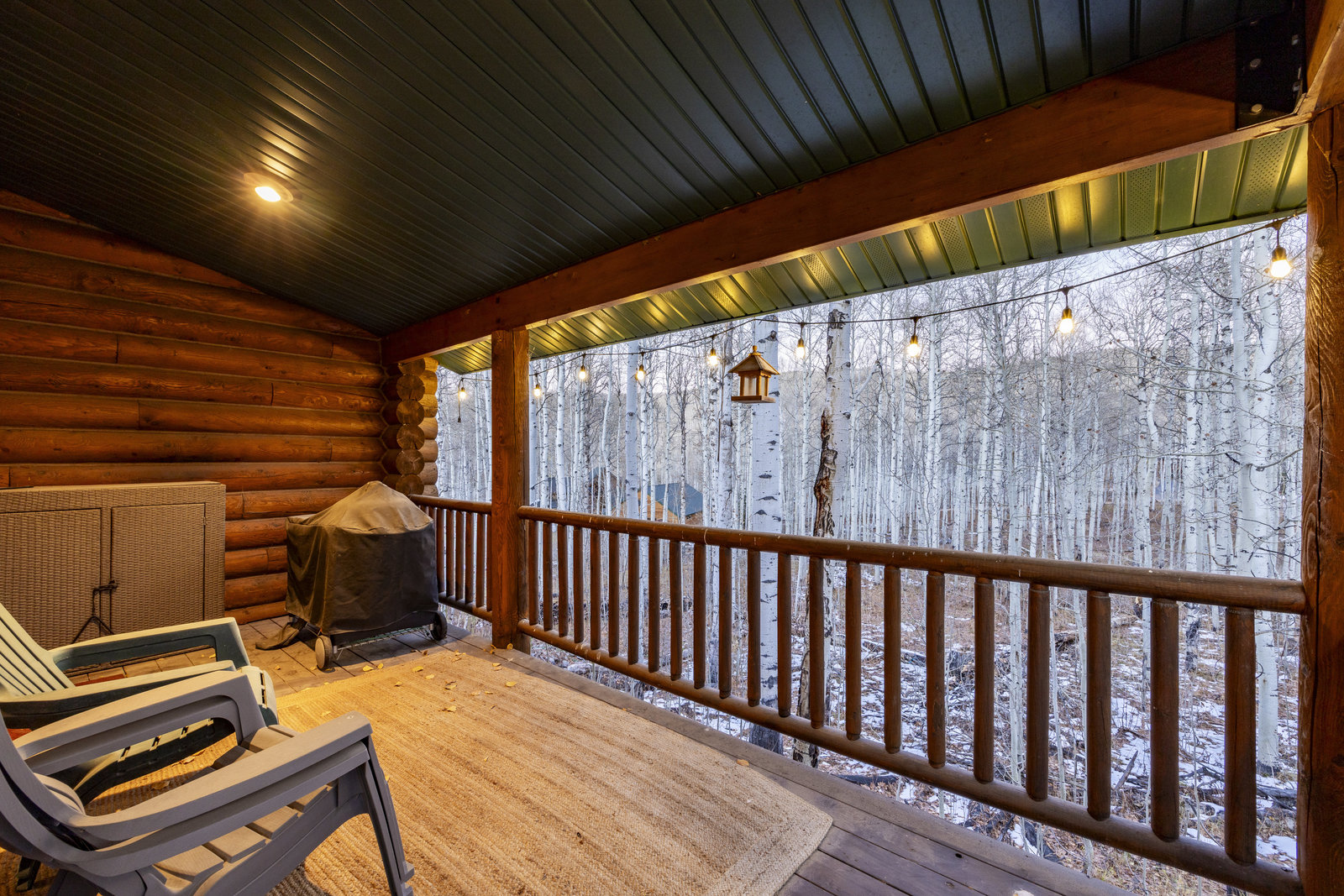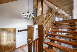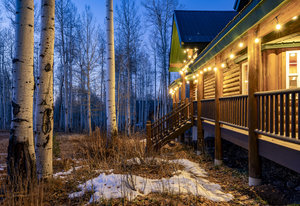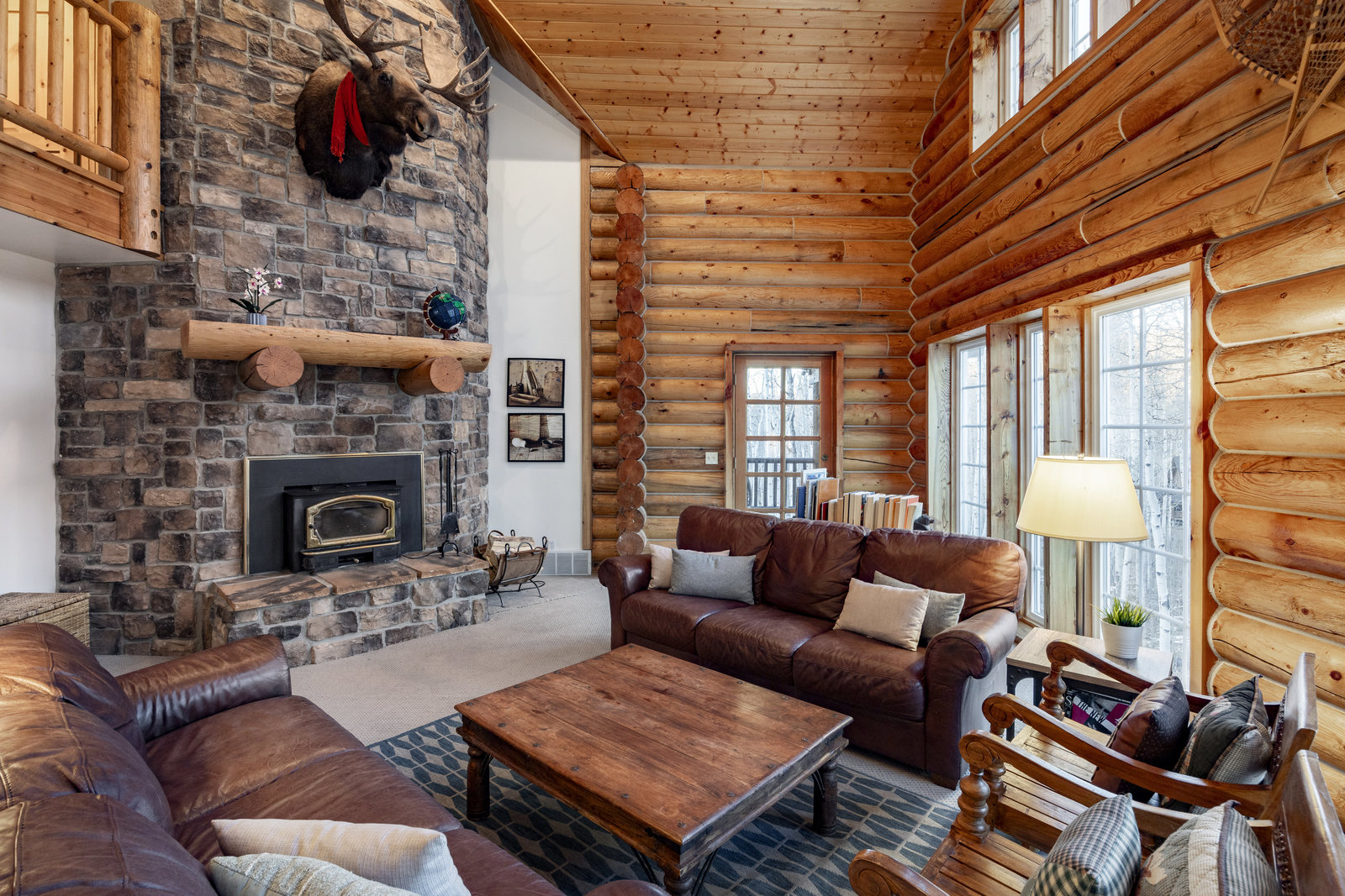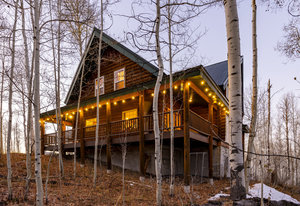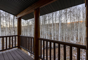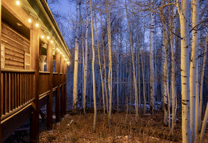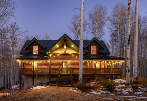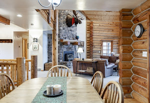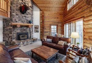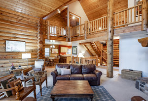 Nestled among a grove of aspens in the gated Timberlakes community, this charming log cabin embodies the best of mountain living with privacy, serenity, and timeless rustic appeal. Set back from the road with a circular drive and convenient access to an attached garage, the home feels both secluded and easily accessible. A sprawling wraparound porch invites you to relax and take in the tranquil setting, while the second deck offers additional outdoor space to dine, lounge, and enjoy the mountain air. Inside, the cabin’s warm and inviting interiors showcase vaulted wood ceilings, mountain-inspired light fixtures, and a striking stone fireplace with a wood-burning stove offering the perfect ...