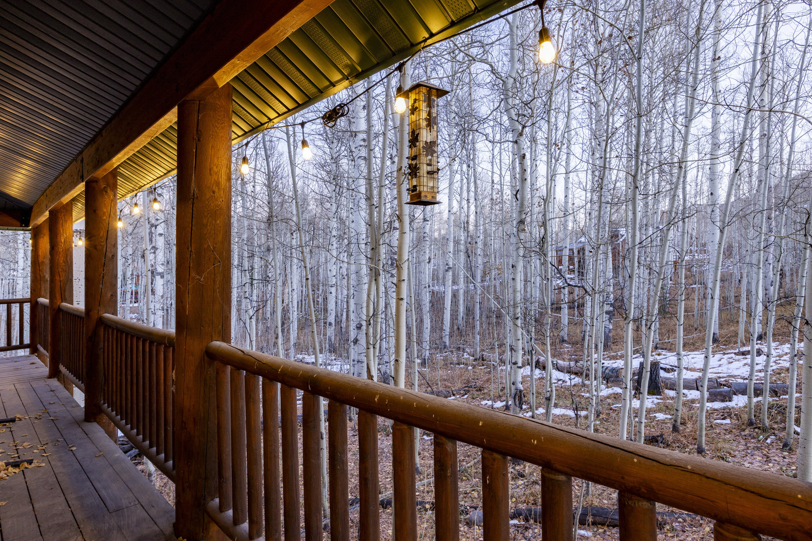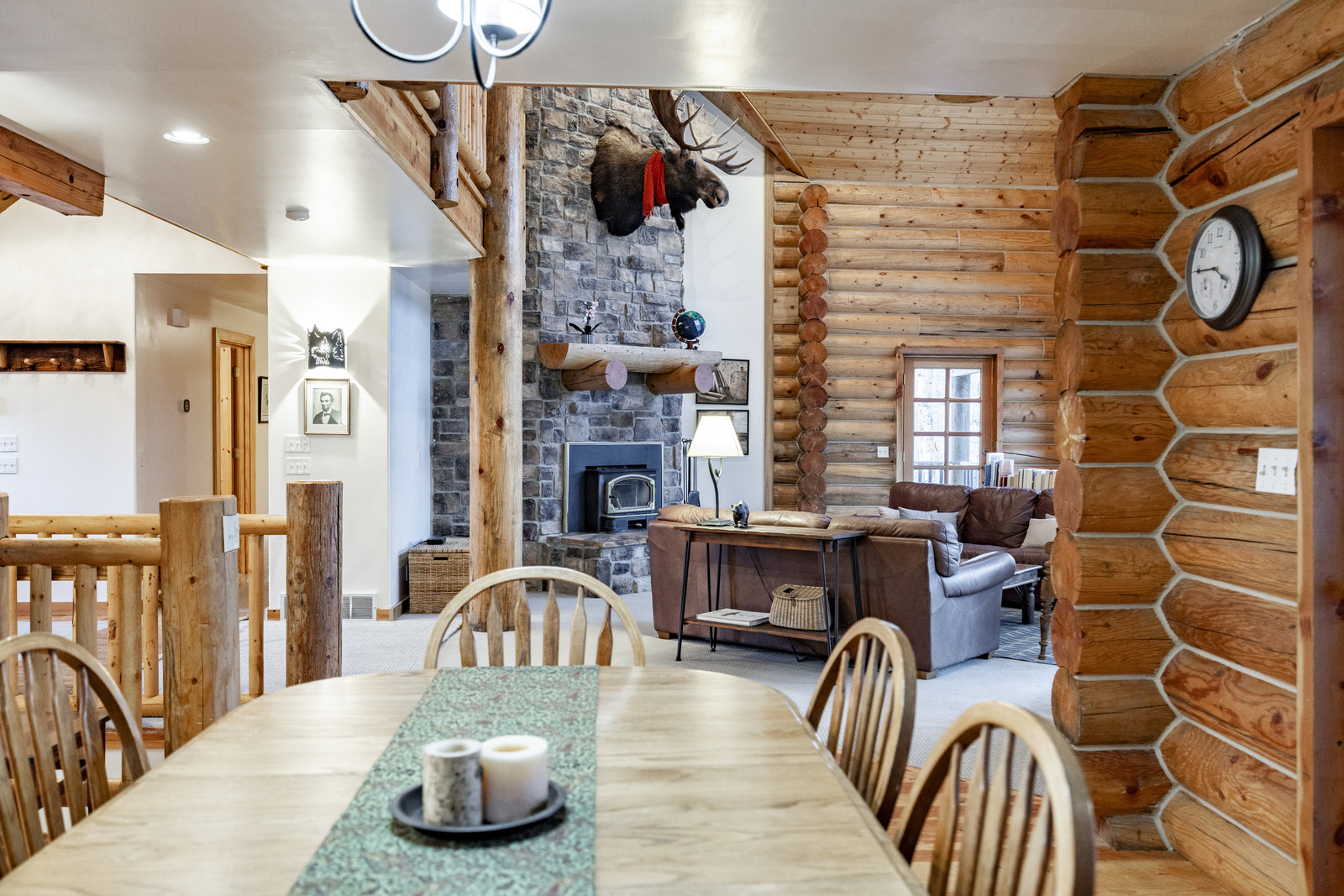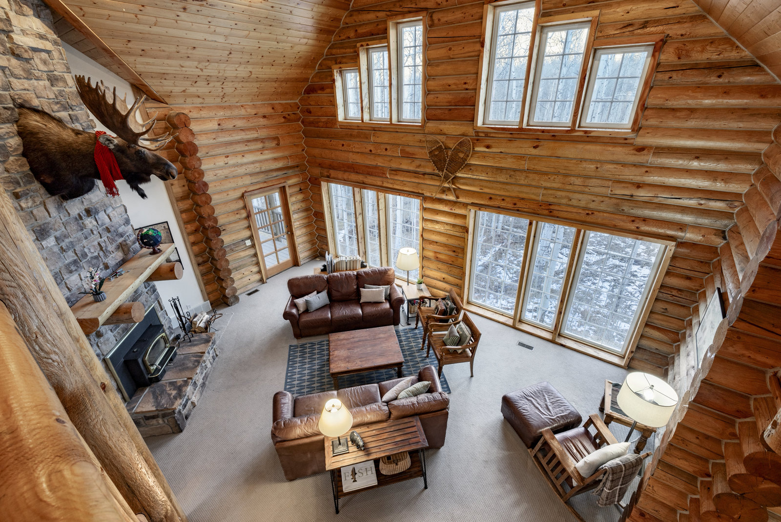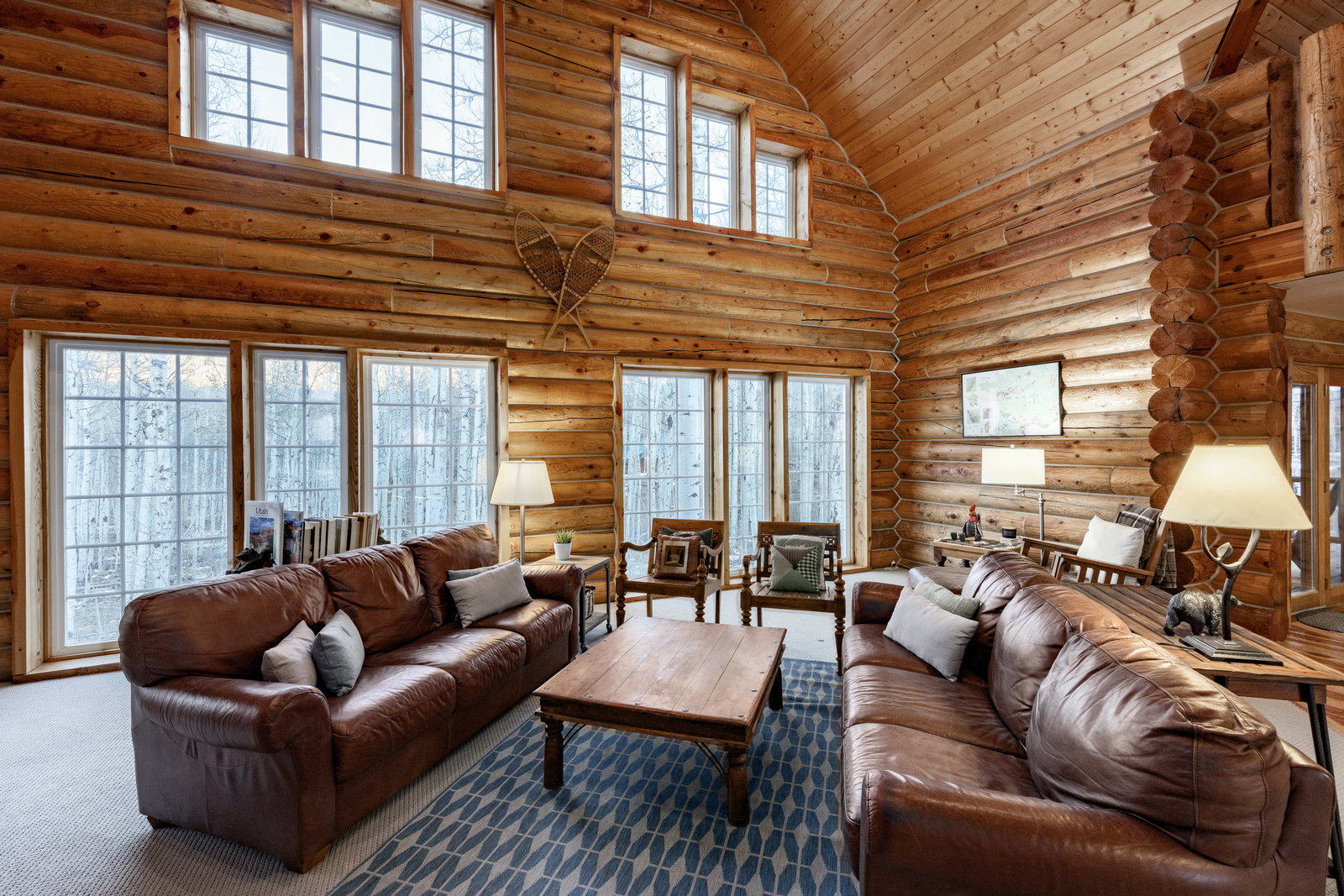 Nestled among a grove of aspens in the gated Timberlakes community, this charming log cabin embodies the best of mountain living with privacy, serenity, and timeless rustic appeal. Set back from the road with a circular drive and convenient access to an attached garage, the home feels both secluded and easily accessible. A sprawling wraparound porch invites you to relax and take in the tranquil setting, while the second deck offers additional outdoor space to dine, lounge, and enjoy the mountain air. Inside, the cabin’s warm and inviting interiors showcase vaulted wood ceilings, mountain-inspired light fixtures, and a striking stone fireplace with a wood-burning stove offering the perfect ...
