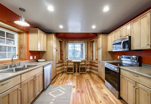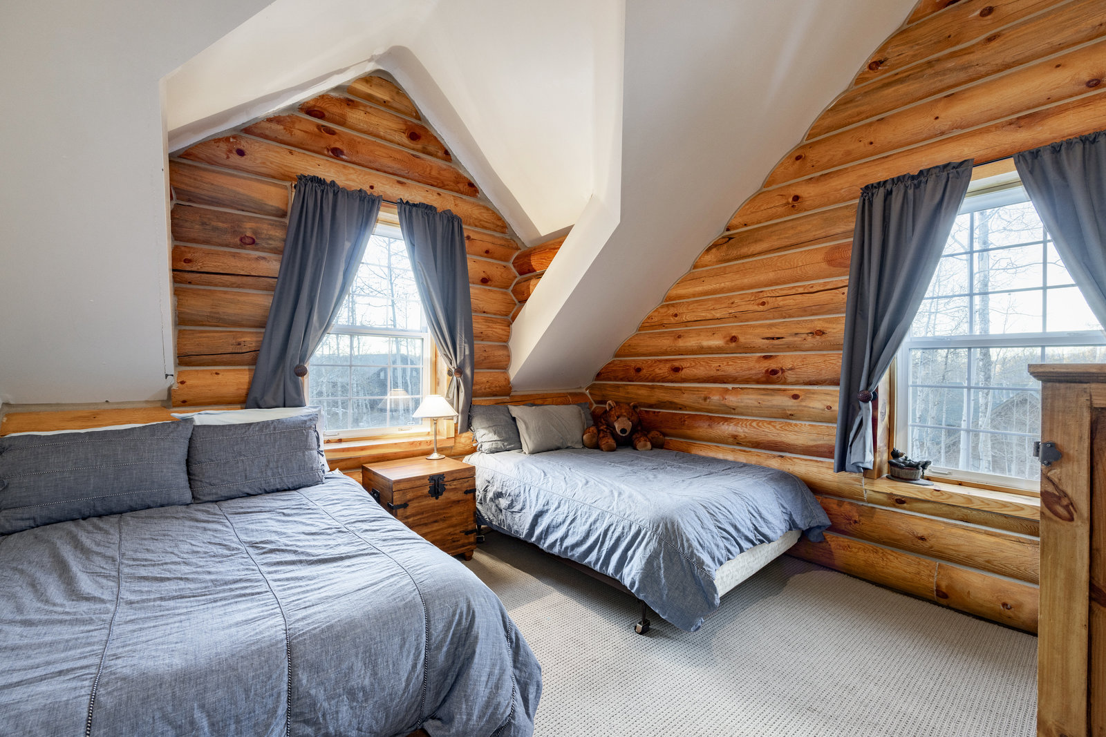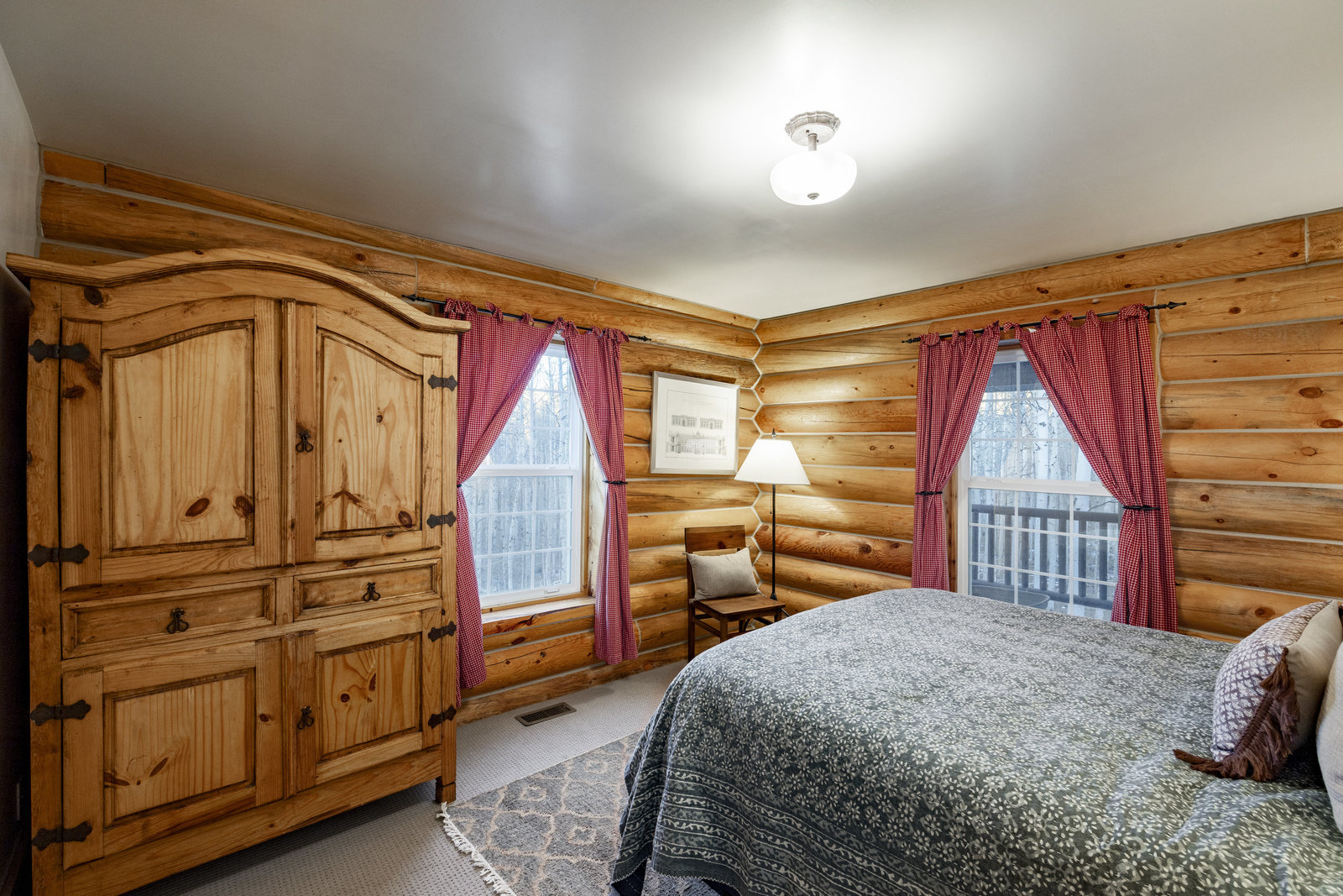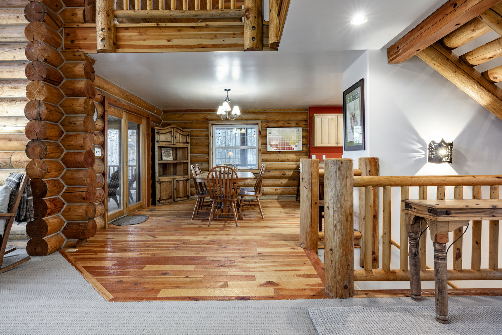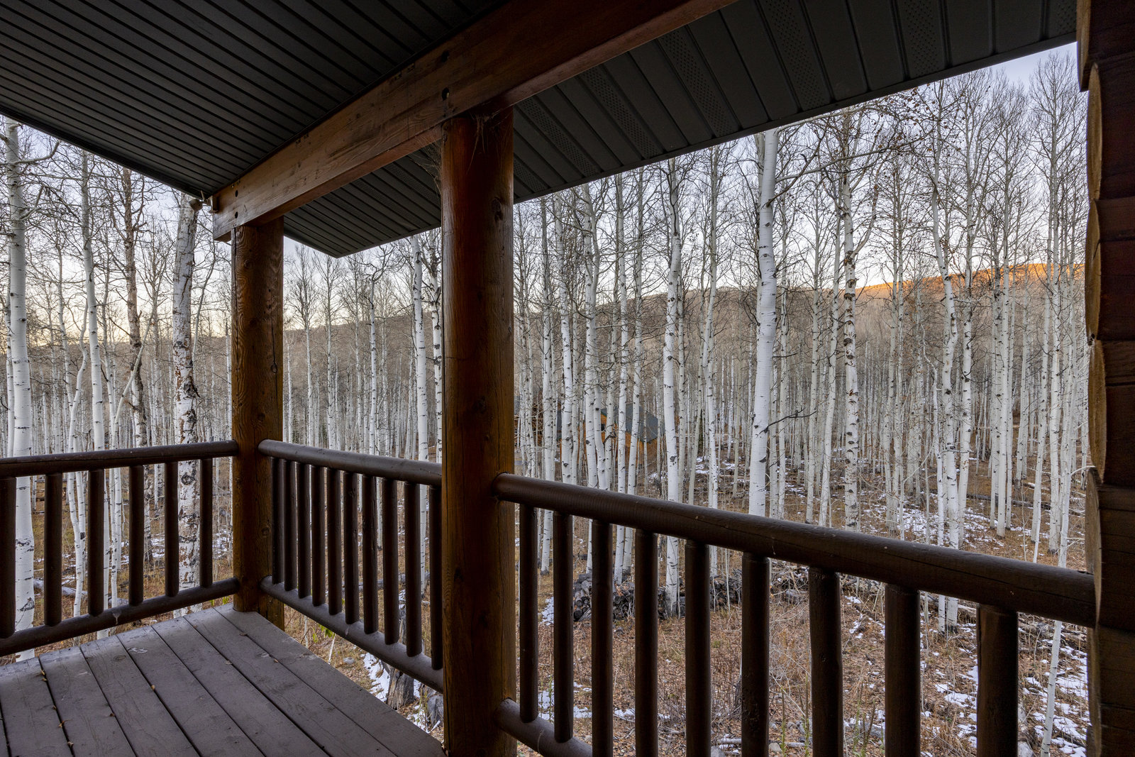 Nestled among a grove of aspens in the gated Timberlakes community, this charming log cabin embodies the best of mountain living with privacy, serenity, and timeless rustic appeal. Set back from the road with a circular drive and convenient access to an attached garage, the home feels both secluded and easily accessible. A sprawling wraparound porch invites you to relax and take in the tranquil setting, while the second deck offers additional outdoor space to dine, lounge, and enjoy the mountain air. Inside, the cabin’s warm and inviting interiors showcase vaulted wood ceilings, mountain-inspired light fixtures, and a striking stone fireplace with a wood-burning stove offering the perfect ...
