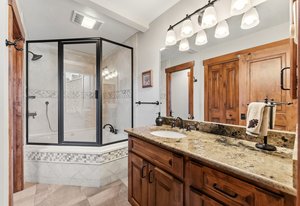 Downstairs, the oversized one-car garage provides extra storage and a large owner’s lock-off area for all your mountain toys—an essential perk in Breckenridge’s snowy climate. Two large decks extend your living space outdoors, ideal for soaking in the peace and privacy of the surrounding evergreens.