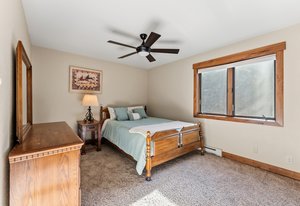 Upstairs, the primary suite is a true retreat, highlighted by panoramic views, a beautifully tiled ensuite bath, and plenty of room to unwind after a day outdoors. A second bedroom and separate full bath offer comfortable guest accommodations.