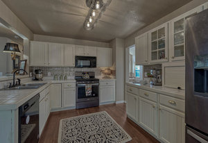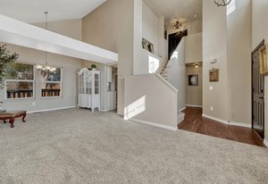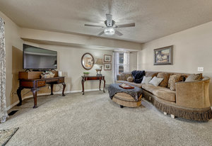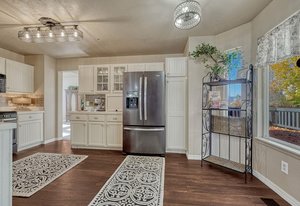 Move-in ready and beautifully updated, this charming 2-story home with a finished basement offers exceptional value in highly desirable School District 20. Just a short walk to Cottonwood Park—with a YMCA-run swimming pool, skate park, ice rink, athletic fields, and miles of trails—this location is tough to beat. Recent improvements include brand-new Stainmaster carpet, new LVP flooring, updated light fixtures, fresh interior and exterior paint, a new garage door, new water heater, new roof, new front door, refreshed landscaping, and a refinished deck. All of this provides peace of mind and a truly turnkey experience. Step into a vaulted living room filled with natural light, then retreat to the spacious primary suite featuring a 5-piece bath and walk-in closet. The inviting kitchen offers gas cooking, a built-in breakfast nook, and flows seamlessly into the cozy living area—perfect for everyday gathering. Appliances are only 3 years old. Walk out to stunning Pikes Peak views from the expansive 40 × 16 back deck—an impressive extension of your living space ideal for entertaining or relaxing. The large, beautifully maintained backyard offers ample room for play, gardening, or peaceful evenings outdoors. A convenient main-level laundry room with gas or electric hookups completes this thoughtful and functional layout. Clean, neat, updated, and truly move-in ready—this home has it all. Come see it today!