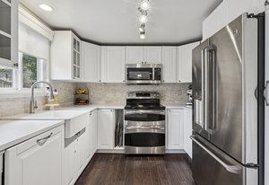 Nestled in the heart of Centennial, this recently updated gem offers a perfect blend of modern comfort and timeless charm, spanning 2,958 square feet with 4 bedrooms and 3 bathrooms. From the moment you arrive, the inviting exterior captivates with its charming covered front porch and mature landscaping, setting a casually elegant tone that's echoed throughout the home. Step inside to an open-concept living space where natural light floods through large windows, highlighting the fresh, neutral palette that flows seamlessly from room to room. The heart of the home is the open kitchen, designed for both everyday ease and entertaining. Crisp white cabinetry pairs beautifully with a neutral backsplash and stainless-steel appliances. At the center, a large eat-in island invites casual meals or morning coffee, complete with a farmhouse sink that adds that coveted rustic flair. The front dining area also works equally well as a home office, while the large living room, flooded in natural light, flows easily into the cozy family room centered around the charming fireplace. Upstairs, the primary suite is a serene sanctuary, boasting vaulted ceilings, a ceiling fan, a private balcony and an en-suite bath with dual vanities. The additional bedrooms are equally inviting, with ample space for family or guests and a shared second bath. Downstairs, the finished basement expands the living possibilities with a versatile den area or non-conforming bedroom, and a dedicated game/media room. Outside, the large private backyard is a true oasis, enclosed for seclusion and featuring a beautiful patio perfect for barbecues. Centrally located and just minutes from DTC or Park Meadows, with ample shopping, restaurants and more. Don’t miss out on this beautiful home!
