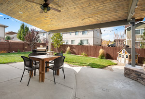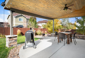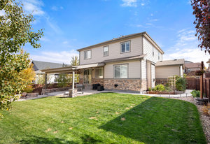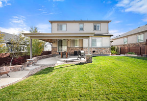 Beautiful and meticulously maintained 5-bedroom, 4-bathroom home in the sought-after Wheatlands neighborhood! Great layout with 4 bedrooms, 2 bathrooms and the laundry room upstairs, plus an additional bedroom and bathroom in the finished basement. While everyone has room to spread out, the main floor keeps everyone connected with an open concept kitchen, dining and living room. Perhaps the highlight of the home, the living space continues outside to the gorgeous covered extended patio and landscaped yard. Plenty of storage for your Colorado outdoor gear in the attached 3-car garage. Forget the “to-do” list, significant updates in this home include: new flooring throughout (including refinished hardwood floors on the main level and new carpet upstairs), a new hot water heater, new control board on the furnace, stonework around the fireplace, new caissons on the back patio, plantation shutters, updated light fixtures, and improved sidewalk and drainage around the south side of the home. Life in Wheatlands is about more than just a house—your low $75/month due includes a free Y-Premium Household membership at the Aurora YMCA at Wheatlands, and covers your trash, recycling, community activities, and neighborhood pool access! This home offers just the right amount of space in the areas you really need it, all in a fantastic neighborhood!