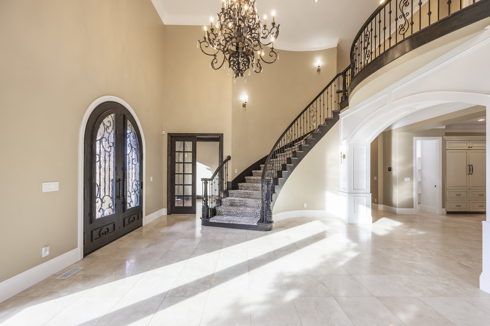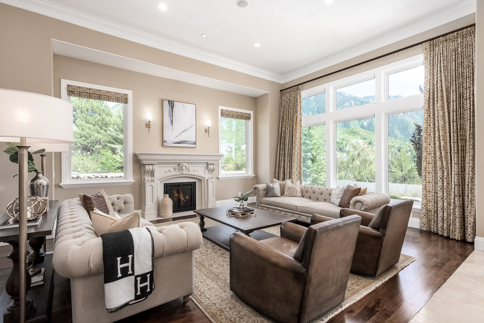 Situated between the breathtaking Wasatch Mountains and the unparalleled convenience of Salt Lake City, this remarkable Sandy estate stands as one of the finest properties ever introduced to the market. Old World sophistication meets modern luxury in this meticulously crafted 7,500 sq. ft. residence, offering six bedrooms and four-and-a-half bathrooms on a pristine half-acre lot. Recently enhanced with a newly installed private gate, new luxury carpet, and custom window coverings, the home now offers an even greater sense of exclusivity, comfort, and refinement. From the moment you arrive, the dramatic twenty-foot entryway with wrought-iron doors, a grand chandelier, and a sweeping staircase sets the tone for the home's exceptional design. Fifteen-foot ceilings in the living and dining rooms, ten-foot ceilings throughout the main level, and expansive panoramic windows frame majestic mountain views. Additional features include an executive-level office, a central vacuum system, energy-efficient lighting, and a Savant Smart Home Alarm System with every door and window fully secured. The residence showcases exquisite craftsmanship with custom woodwork, Italian Travertine flooring, walnut hardwood, two fireplaces with hand-carved stone mantels, tailored Roman shades and draperies, built-in cabinetry, and integrated speakers throughout the main and lower levels-providing an ideal environment for world-class entertaining. The gourmet kitchen serves as the heart of the home and is appointed with Thermador appliances, including a custom wood-paneled refrigerator, four ovens, a six-burner gas range with hood, two spacious islands, granite countertops, and a generously sized walk-in pantry. A formal dining room with its own fireplace enhances the space for memorable gatherings. Designed with an exceptional separation of space, the private main-level primary suite features a tranquil sitting area and an expansive walk-in closet with custom built-ins. The spa-inspired primary bath includes an oversized soaking tub, dual vanities, and a tiled walk-in steam shower - an indulgent retreat for relaxation and rejuvenation. Four additional bedrooms and accompanying baths create the perfect setting for family living or hosting guests. The lower level boasts nine-foot ceilings, limestone accent walls, surround-sound speakers, a 500-bottle temperature-controlled wine cellar, Bosch appliances, and a full secondary kitchen-ideal for entertaining. The impressive home gym offers commercial-grade flooring, an Air King fan, and another steam shower. Outdoors, the estate continues to impress. Impeccable landscaping with mature pine trees, expansive lawn areas, and an oversized patio creates an oasis of privacy and natural beauty. The exterior is enhanced by smart lighting, a welcoming firepit, a commercial-grade gas grill with rotisserie, and a Chicago brick pizza oven-perfect for alfresco dining and effortless entertaining. A radon mitigation system further enhances the home's safety. Perfectly positioned minutes from world-renowned ski resorts, Dimple Dell Canyon, scenic trails, and sweeping mountain views, this residence offers a lifestyle that is both luxurious and deeply connected to the outdoors. Recognized as one of Money.com's "Best Places to Live," Sandy is also consistently ranked among the nation's safest cities-making this gated estate even more exceptional.