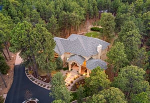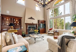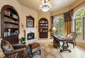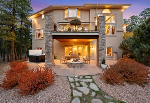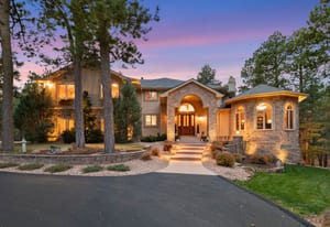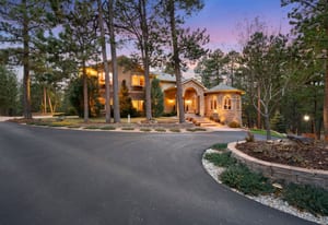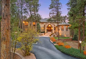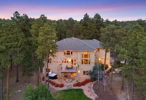 Elegant and stately 7,000+ sq ft custom home with striking curb appeal positioned on a stunning 2.6 acre parcel, majestic Pikes Peak Views, towering ponderosa pines, manicured landscaping w/ lighting, abundance of flowers, aspens and mature blue spruce. Located in sought after Higby Estates of Monument w/ exceptional D38 Schools and quick access to the best amenities, I-25 and Colorado Springs or Denver. A grand foyer w/ towering 24 foot vaulted ceilings, curved staircase. Expansive great room w/ a wall of windows, 2-story vaulted ceilings, views, automatic window coverings, juliet balcony, gas fireplace and custom built-ins. Main level turret library w/ limestone fireplace, large bay window frames the exterior wall flooded w/ natural light and serene views of the forest, cherry built-ins. Five ensuite bedrooms (4 on the upper level) and 6 baths. Sitting room w/ Broadmoor inspired wood fireplace w/ spectacular limestone surround, hardwood floors, crown molding - open to a spacious dining room w/ floor to ceiling windows. Gourmet kitchen w/ high quality cherry cabinetry, granite counters, island w/ seating, Wolf gas cook-top, French door oven, wine fridge and commercial refrigerator. Stamped concrete deck off w/ metal railing and stone pillars and awning. Primary suite w/ sweeping Pikes Peak and forest views, sitting area, automatic blinds, double sided fireplace, dual walk-in closets, bonus attached wellness room and luxurious 5 piece bath w/ marble counters, heated floors, whirlpool tub and over-sized shower. Walk-out lower level perfect for entertaining w/ ensuite bedroom, family room, game room, stunning wood bar, wine cellar and theater room w/ new ultra HD projector and seating. Lower level patio w/ stone gas firepit and hot tub. Architectural series Pella windows, class 4 impact resistant roof, Lennox high eff furnace and AC units, paved asphalt circular driveway, new Quartz counters in most baths, whole house audio system, hardwood floors on main level.