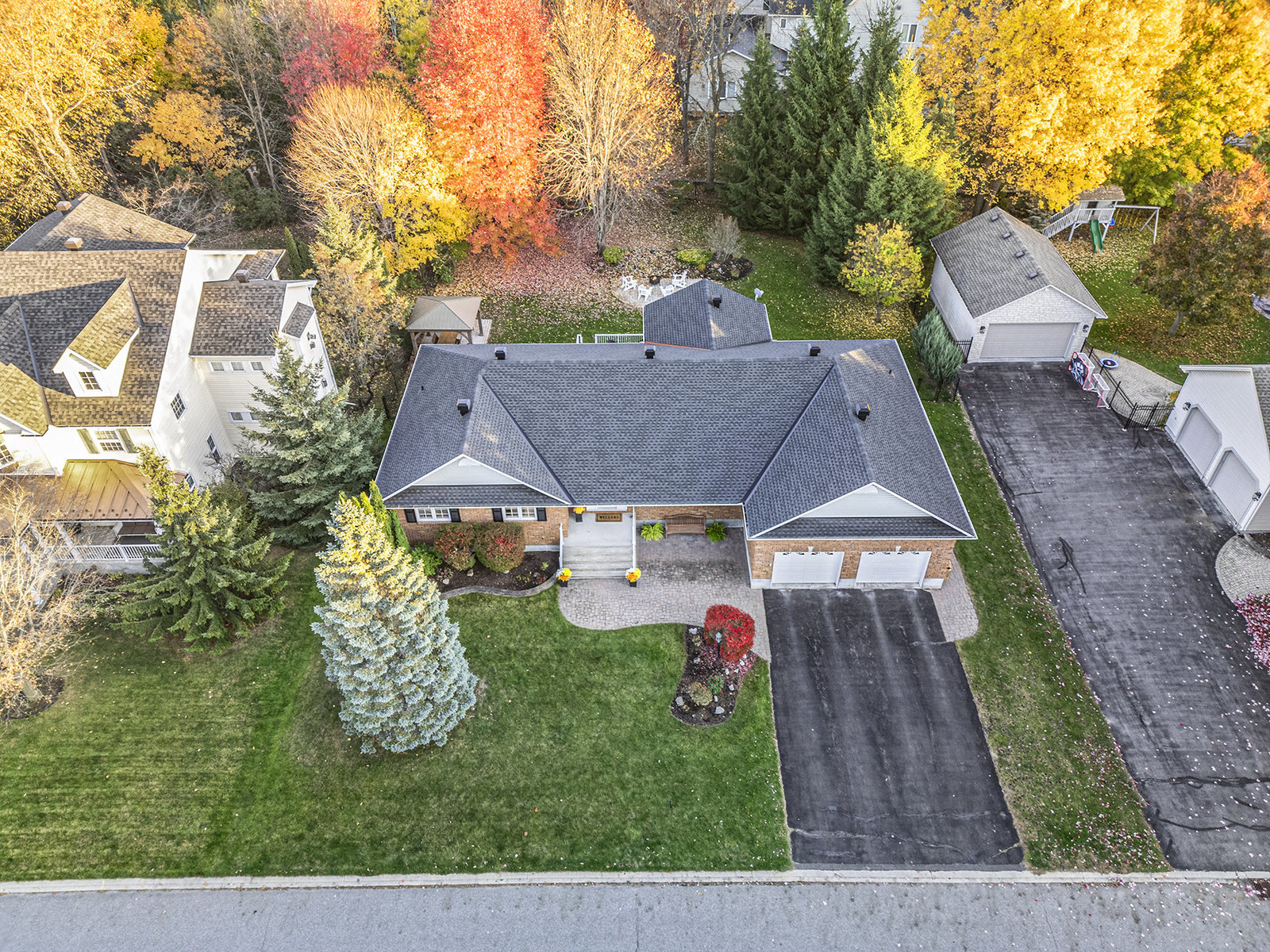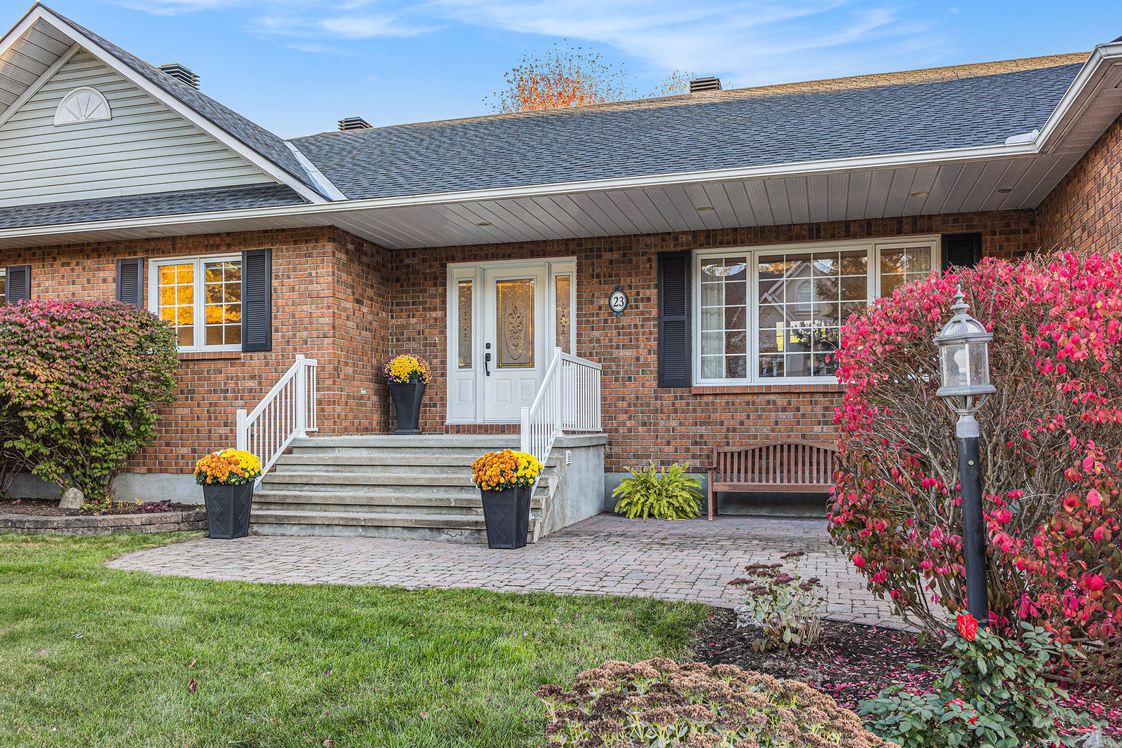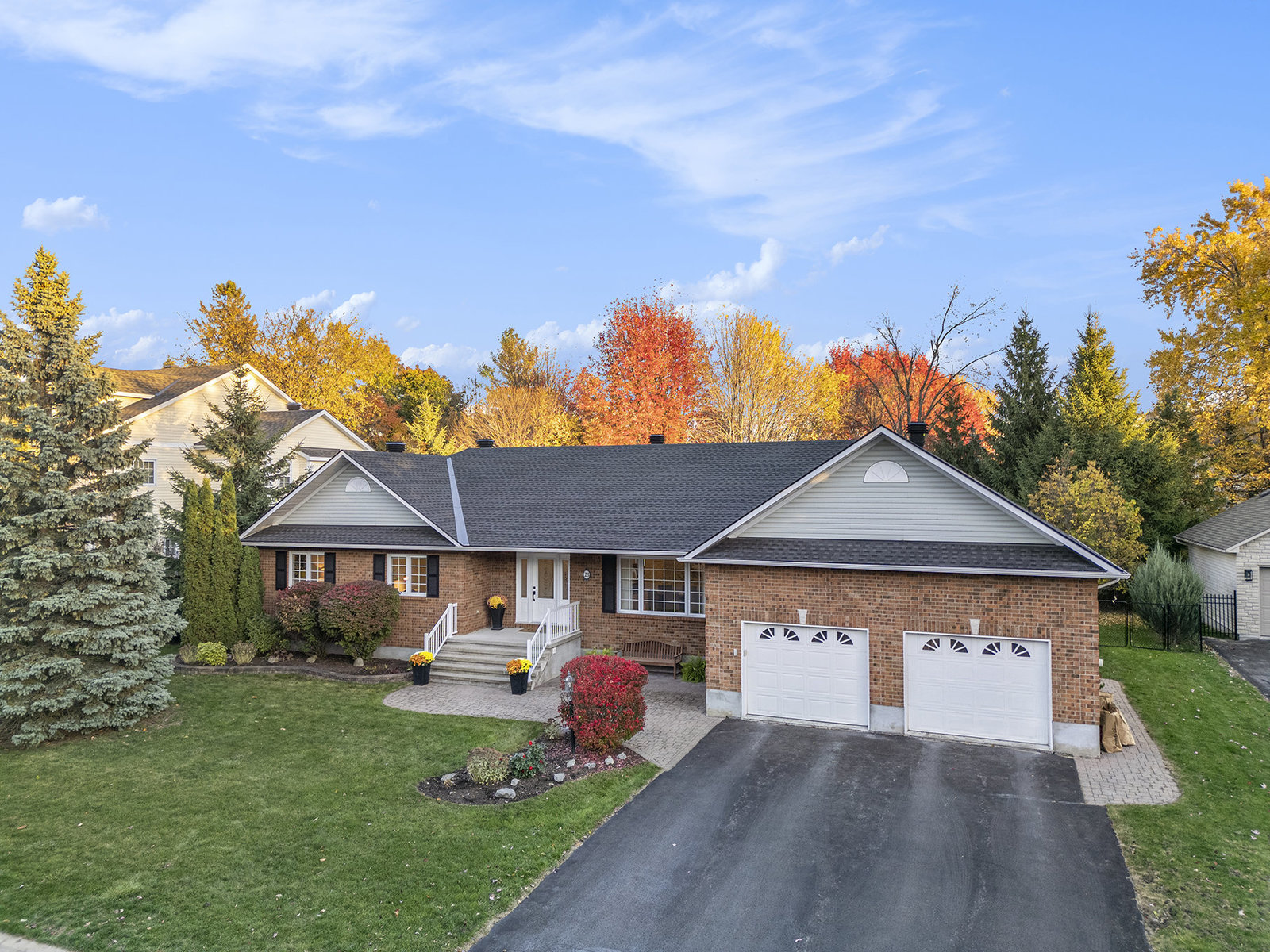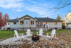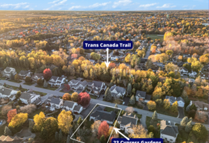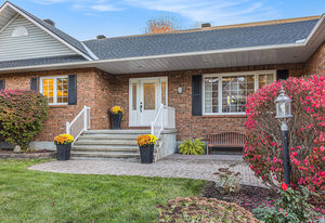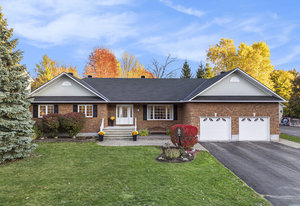 OPEN HOUSE SUNDAY NOV 2, 2 - 4 PM. Welcome to 23 Cypress Gardens - a spacious and tastefully updated bungalow in the heart of Stittsville, offering around 4,400 sqft of living space across two levels. Set on one of the community's most sought-after streets, where the lots are deep, the days are peaceful, and the Trans Canada Trail is just steps away, and close to all the coffee shops, parks, schools, and amenities that make Stittsville such a welcoming place to live. Inside, a bright foyer opens to an inviting main floor, where on the left you'll find three generously sized bedrooms tucked away in their own private wing, including a primary suite with walk-in closet and ensuite bath featuring a walk-in shower. To the right of the grand foyer, a large dining room and sitting room lead to the heart of the home - a stunning open-concept family room and custom kitchen area with extended island, built-in double oven, and premium appliances. From here, you'll find a spacious mudroom connecting to the oversized two-car garage and the lower level. The fully finished basement with 8"5' ceilings is spacious and very bright, including a large bedroom, a den, two storage rooms, and an expansive family room with wet bar and electric fireplace - the large sectional sofa here is included in the sale! There is a backdoor entrance that offers excellent potential for a nanny or in-law suite. Step outside to your private backyard retreat - 170 ft deep at its longest point - featuring a deck, two newer patios and pergola, and a perennial garden. The whole front and backyard are watered through a built-in irrigation system. Come see this beautiful home for yourself & fall in love!