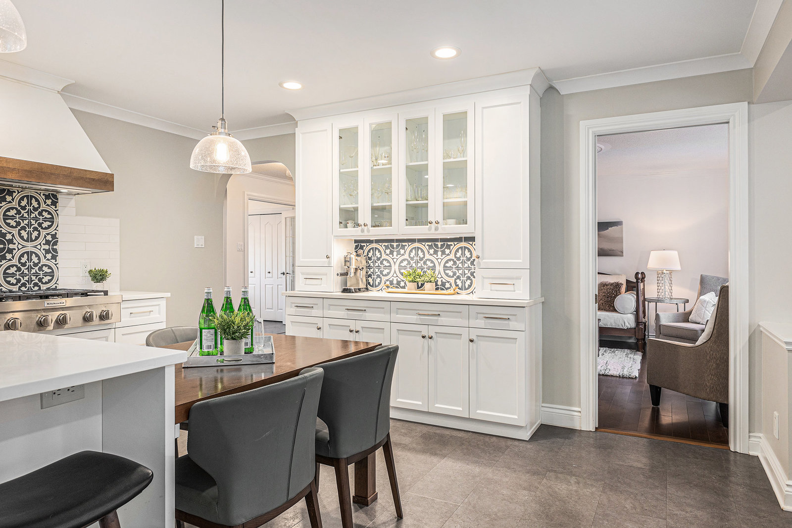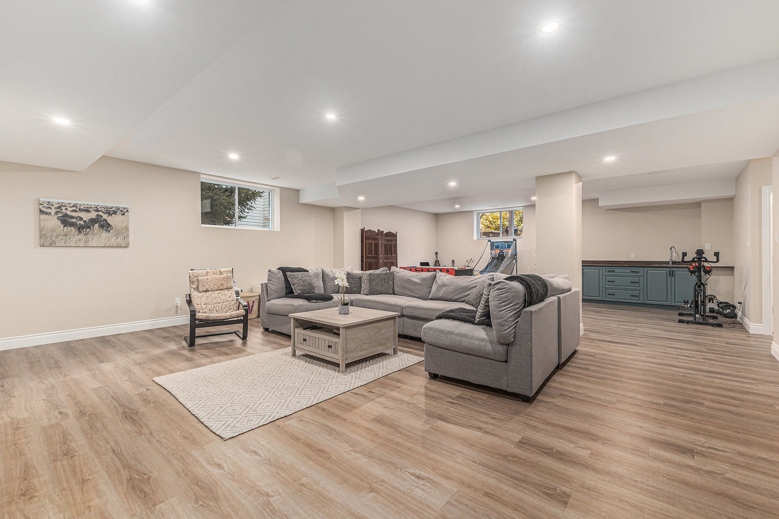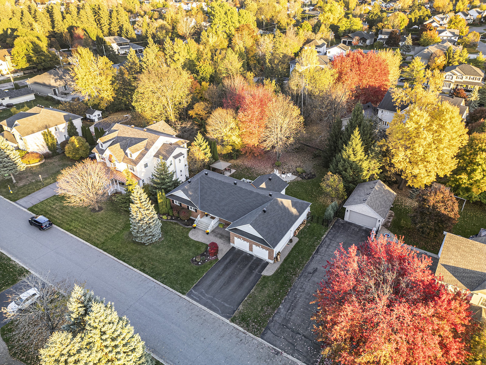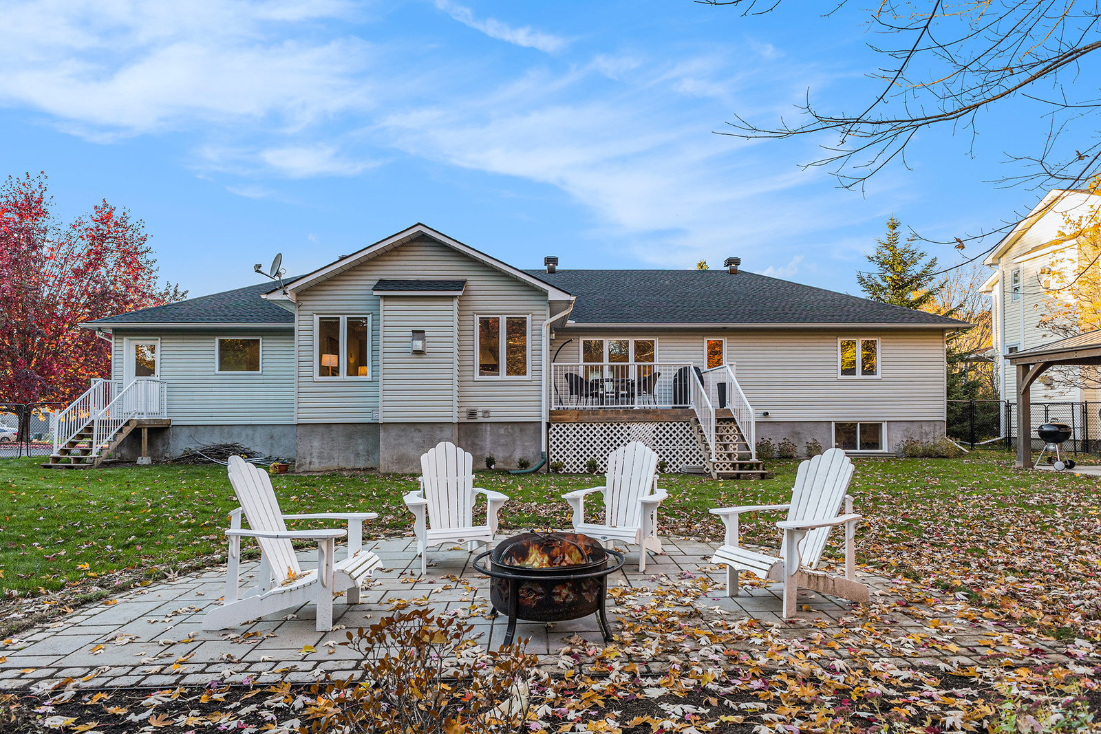 OPEN HOUSE SUNDAY NOV 2, 2 - 4 PM. Welcome to 23 Cypress Gardens - a spacious and tastefully updated bungalow in the heart of Stittsville, offering around 4,400 sqft of living space across two levels. Set on one of the community's most sought-after streets, where the lots are deep, the days are peaceful, and the Trans Canada Trail is just steps away, and close to all the coffee shops, parks, schools, and amenities that make Stittsville such a welcoming place to live. Inside, a bright foyer opens to an inviting main floor, where on the left you'll find three generously sized bedrooms tucked away in their own private wing, including a primary suite with walk-in closet and ensuite bath featuring a walk-in shower. To the right of the grand foyer, a large dining room and sitting room lead to the heart of the home - a stunning open-concept family room and custom kitchen area with extended island, built-in double oven, and premium appliances. From here, you'll find a spacious mudroom connecting to the oversized two-car garage and the lower level. The fully finished basement with 8"5' ceilings is spacious and very bright, including a large bedroom, a den, two storage rooms, and an expansive family room with wet bar and electric fireplace - the large sectional sofa here is included in the sale! There is a backdoor entrance that offers excellent potential for a nanny or in-law suite. Step outside to your private backyard retreat - 170 ft deep at its longest point - featuring a deck, two newer patios and pergola, and a perennial garden. The whole front and backyard are watered through a built-in irrigation system. Come see this beautiful home for yourself & fall in love!