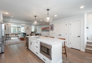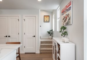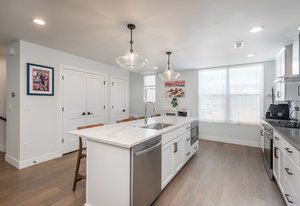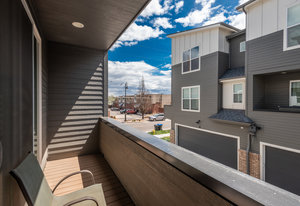 Discover the charm and convenience of this exquisite townhome, perfectly located near Olde Town Arvada. Featuring 3 bedrooms and 3 bathrooms, this home is designed for modern living and ready for you to move in and enjoy. As you enter, you'll be welcomed by a beautifully crafted built-in coat rack and storage. An adaptable office or bedroom, complete with a ¾ bath, offers flexibility to suit your needs. Head upstairs to the expansive great room, where bright white cabinets with soft-close drawers enhance the elegant kitchen. This chef's paradise boasts quartz countertops, a stylish backsplash, and a generous kitchen island with additional seating, making it ideal for entertaining. High-end appliances, including a gas stove/oven, microwave, dishwasher, and refrigerator, complete the space. The wide-plank hardwood floors extend throughout the main level, where abundant natural light creates a warm and inviting atmosphere. Open the glass doors to the deck, perfect for enjoying sunshine and fresh air. Retreat to the primary bedroom, a serene space with vaulted ceilings, a large walk-in closet with a charming barn door, and a luxurious bathroom featuring quartz countertops, double sinks, and stylish tile flooring. An additional bedroom with a full bath provides added comfort and convenience. Plus, the upstairs laundry room adds practicality to your daily routine. Additional highlights include a tankless water heater for endless hot showers and a 2-car attached garage. Situated centrally in Olde Town Arvada, you'll have easy access to the light rail, shopping, and all the vibrant amenities this community offers. Don’t miss your chance to make this beautiful townhome your own—schedule a visit today!