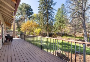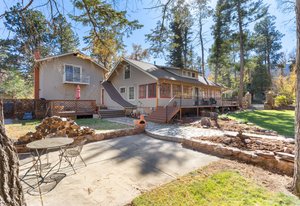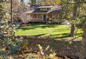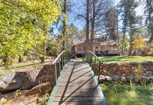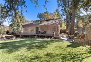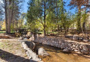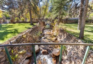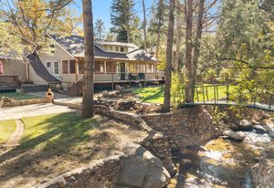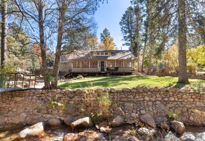 Experience timeless elegance and modern convenience in this extraordinary 4-bedroom, 3-bathroom 1919 Craftsman residence, boasting 4,773 square feet of beautifully finished living space on a premium 15,000 sq. ft. two corner lot in the coveted Cheyenne Canyon neighborhood. Nestled among mature 75-100-year-old trees and lush, established perennial gardens with peony’s, violets, bleeding hearts, day lilies and more, this one-of-a-kind home provides a tranquil, retreat-like atmosphere with private creek frontage, manicured lawns, and a scenic bridge, all directly adjacent to Stratton Open Space for endless hiking, biking, and birdwatching adventures. Your own private patio accompanies the babbling brook, where fish and ducks frequent, along with an abundance of native wildlife including great blue herons, deer, bobcats, mountain chickadees, nuthatches and great horned owls. The light-filled interior showcases classic architectural details, including restored wood flooring, a library with built-in shelving, and a dedicated home office—perfect for today’s flexible living needs. Entertain in style with an inviting living room centered around a gas fireplace and a butler’s pantry. The primary suite is a luxurious retreat, complete with a wood-burning fireplace, private balcony and full bath. Enjoy versatile living spaces for hobbies, fitness, or relaxation throughout. Located minutes from the Broadmoor Hotel, award-winning Cheyenne Mountain D12 schools, renowned restaurants, and city parks, this remarkable home delivers the best of Colorado Springs living—heritage, luxury, and direct access to nature, in a neighborhood prized for its peace and sense of community.