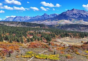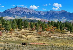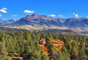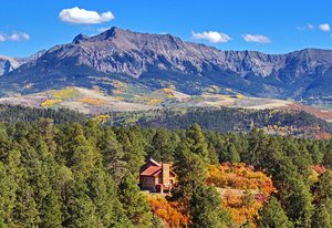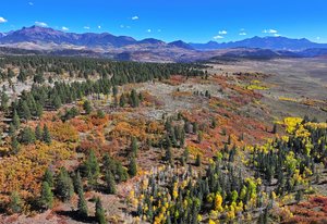 Wilson Bar Ranch encompasses 653+/- acres of diverse and scenic alpine terrain just 35 minutes from Telluride and Ridgway. The landscape features rolling hills and dense forests of aspen, ponderosa pine, and gamble oak, creating a rich and varied habitat. A large spring-fed pond enhances the natural setting, while stunning panoramic views of the Wilson and Sneffels Ranges define its mountain character. Protected by a canopy of old-growth ponderosas, a custom timber cabin offers an appealing respite for relaxing or entertaining. Located in a top-quality hunting unit, the ranch supports abundant wildlife populations. It offers excellent opportunities for hunting, riding, and year-round recreation, all within a picturesque setting that embodies the best of Colorado's high-country.