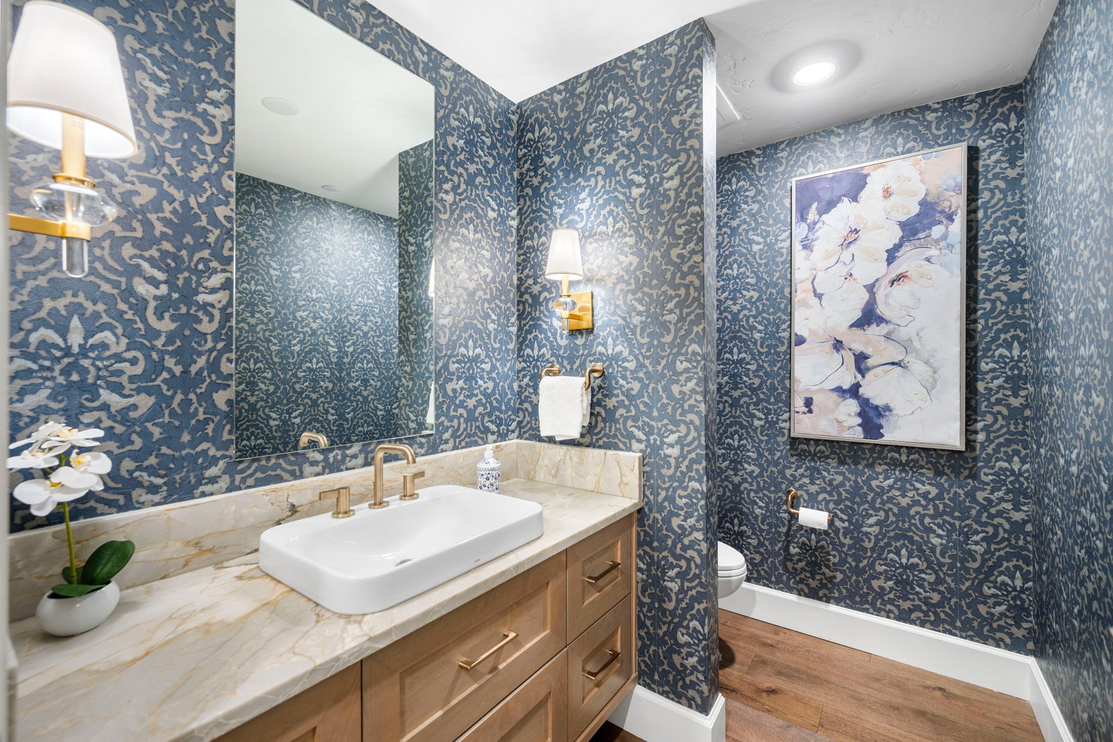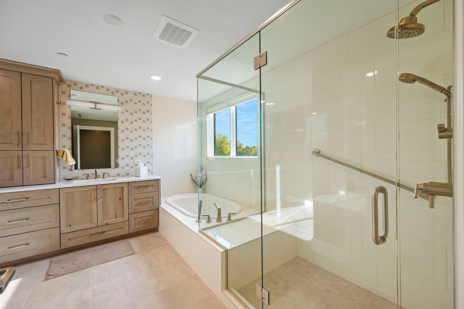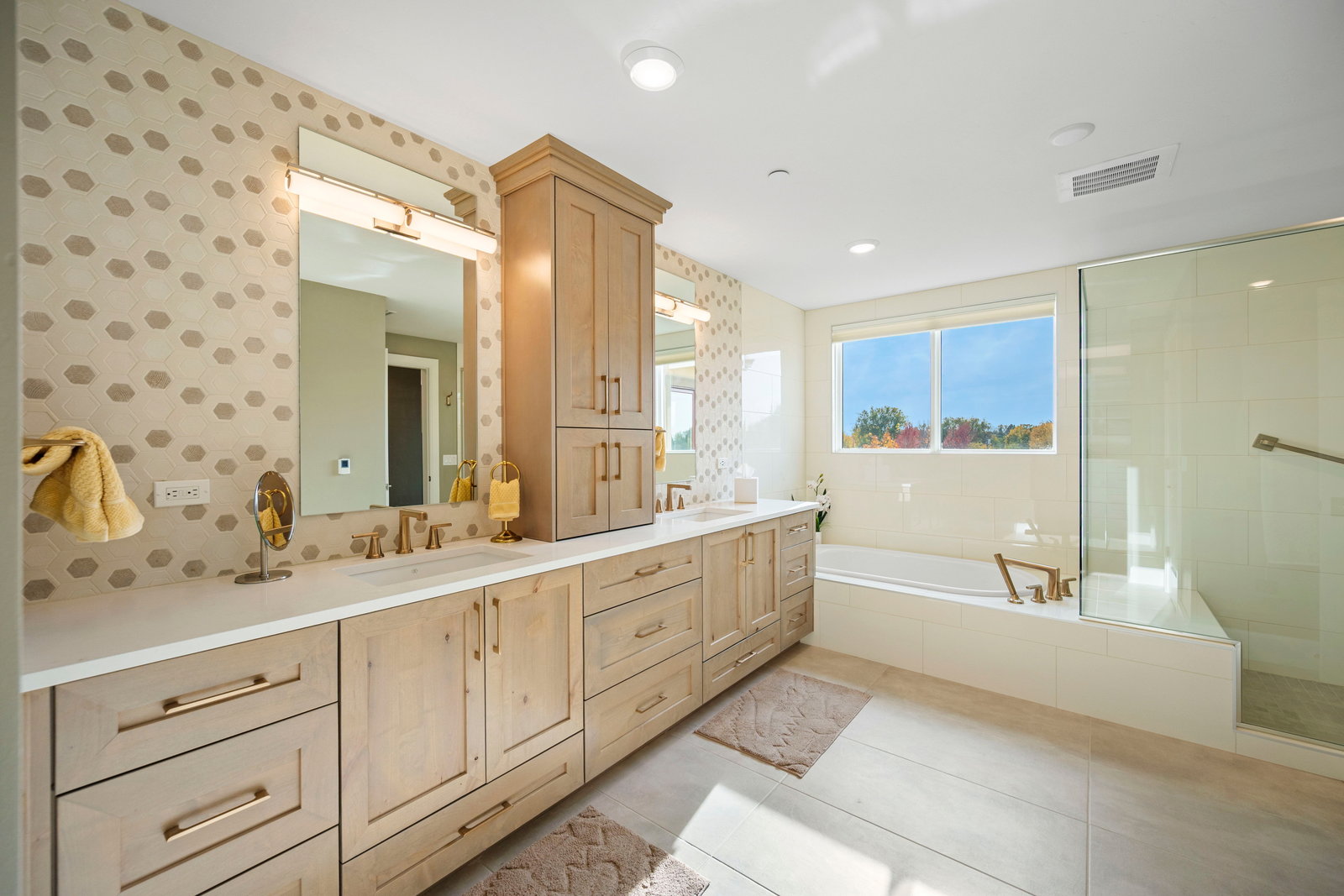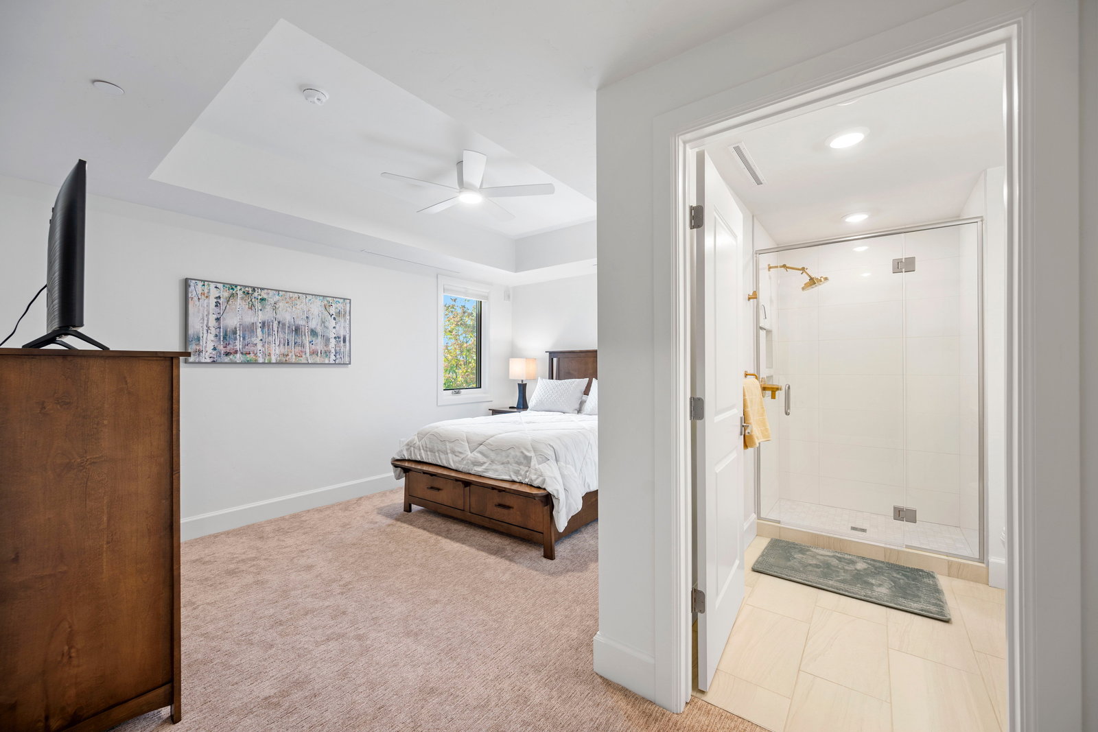 The spacious primary suite is a private retreat, complete with a spa-like en-suite bath featuring heated floors and a custom walk-in closet. A second guest bedroom with ensuite bath and a dedicated office space offer the additional spaces necessary to perfect this lifestyle. A thoughtfully designed open-concept layout enhances the sense of space and light throughout, making this residence truly exceptional.