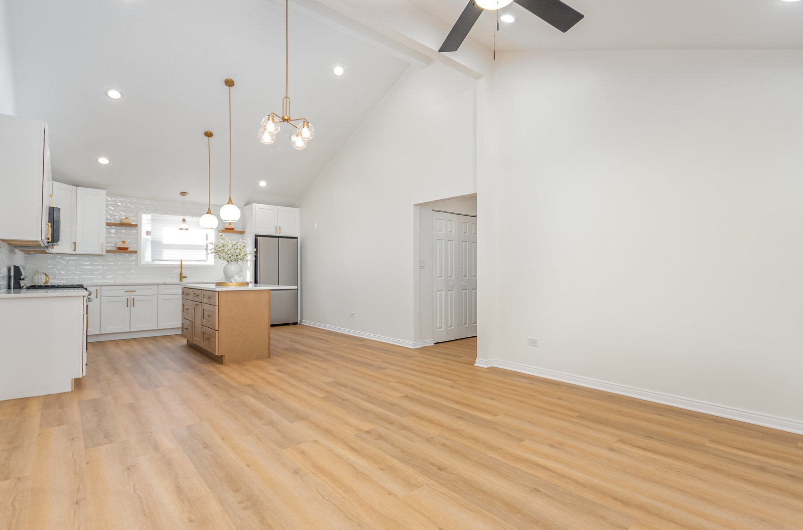 LIKE NEW CONSTRUCTION!! You will love this spacious 3 BEDROOM / 2 BATH - FULLY REHABBED maintenance free vinyl ranch home w/attached garage. Custom white trim and gorgeous 6-panel doors throughout. STUNNING BRAND NEW OPEN-CONCEPT KITCHEN with vaulted ceilings, plenty of custom 42" white cabinets accented with gold hardware, beautiful high-end Quartz countertops, large island/eating area, full stainless steel appliance package, drop sink, commercial faucet w/sprayer and custom subway glass tile backsplash. LUXURY VINYL PLANK FLOORING throughout including in bedrooms. Modern bathrooms showcasing stunning tilework, new vanities and all new fixtures including full size shower in private primary bathroom. Bedrooms are generous size with WALK-IN CLOSETS! Separate laundry room area is equipped and ready for full size washer and dryer. Large living room with vaulted ceiling and sliding patio door - it's the perfect place to entertain! This floor plan offers plenty of flexibility to fit your family -- vaulted living room can be used as a large dining room and 3rd bedroom can be used as a separate living room if preferred. Professionally painted throughout with beautiful modern color choices. Recessed lighting and all new fixtures throughout. ALL NEW VINYL WINDOWS and EXTERIOR DOORS! NEW ROOF - complete tear off with 30-year architectural shingles!! BRAND NEW MECHANICALS including energy efficient furnace, A/C and gas hot water heater. Updated plumbing and electrical with new ...