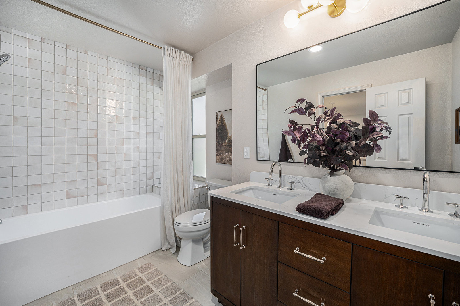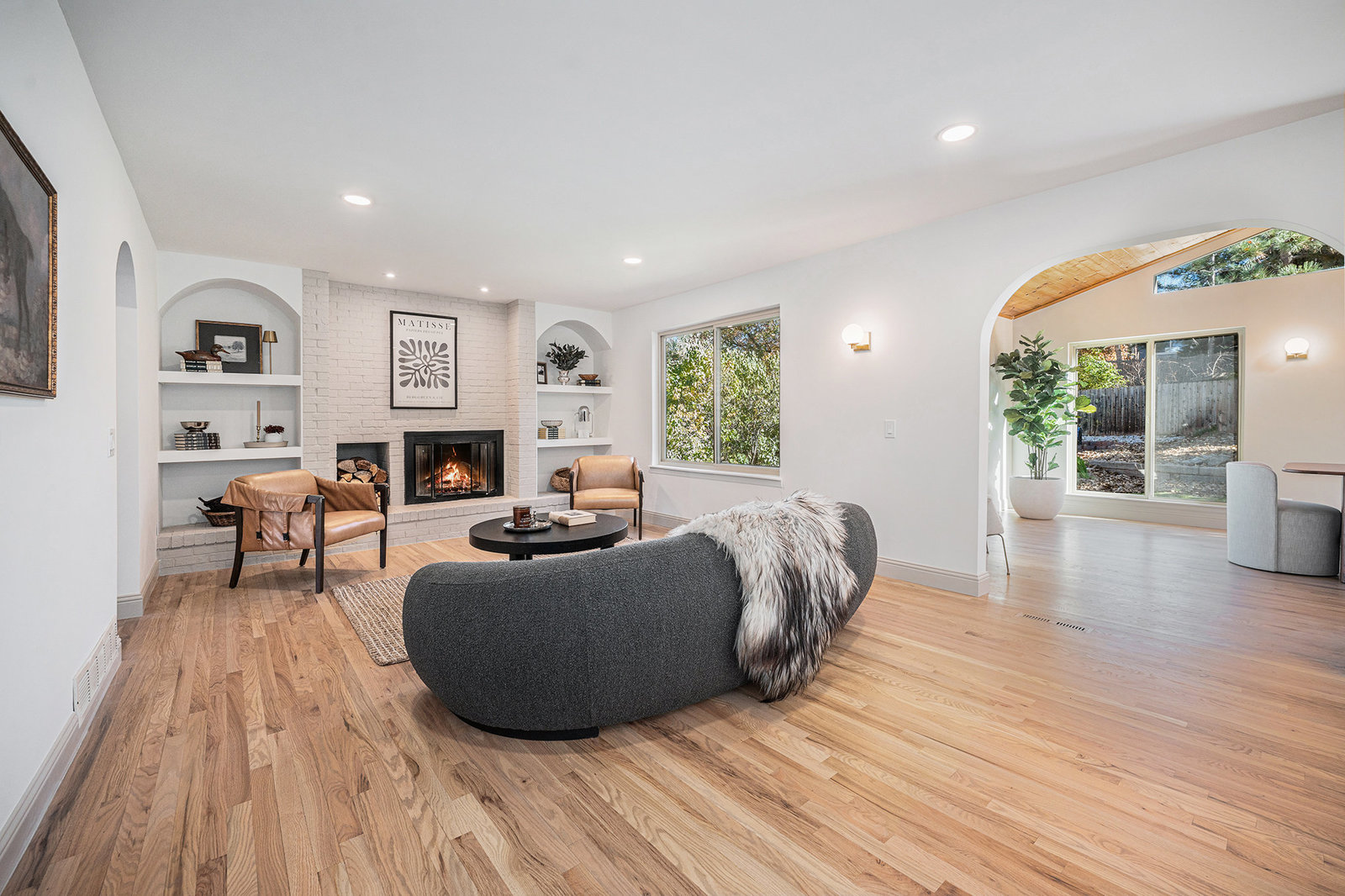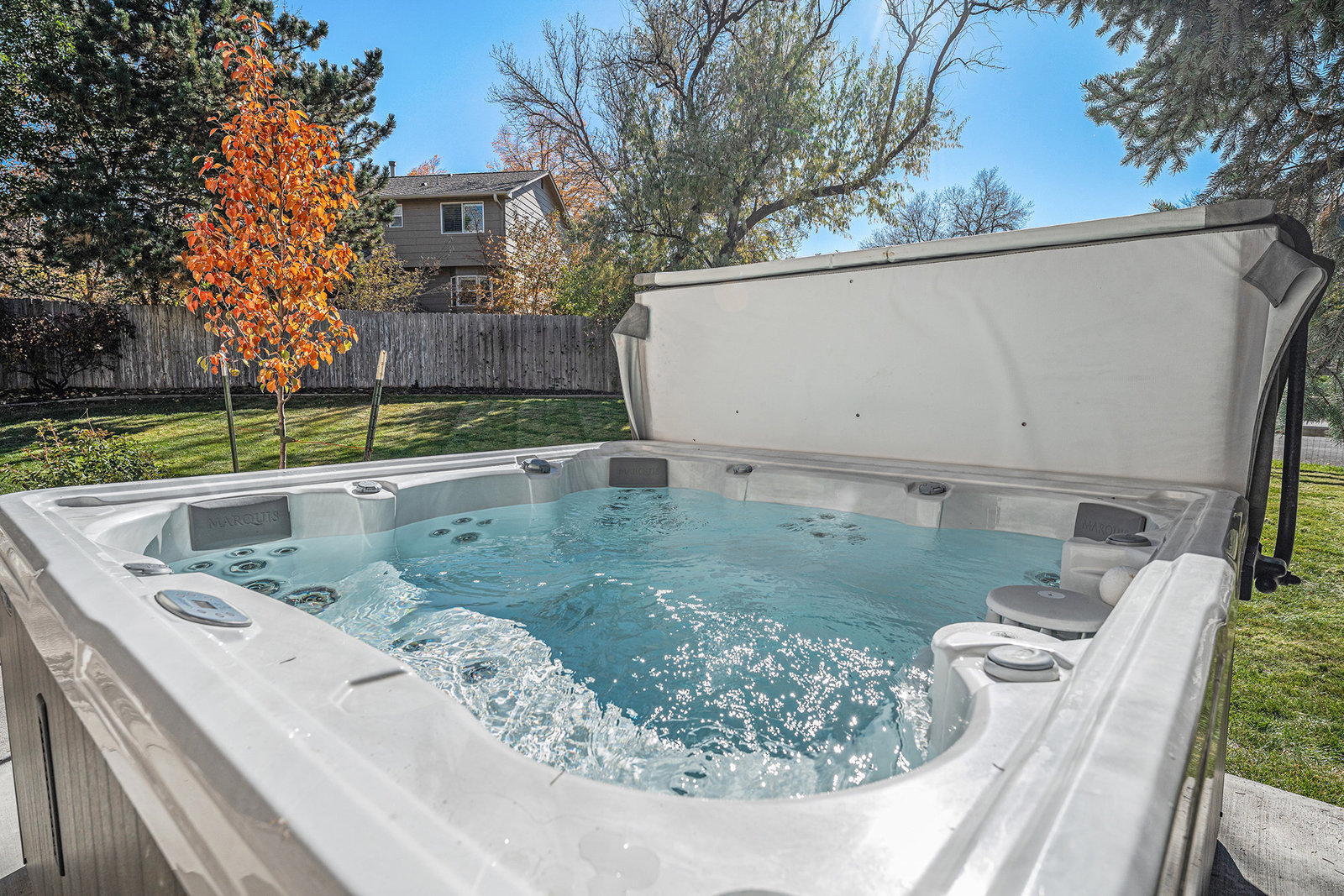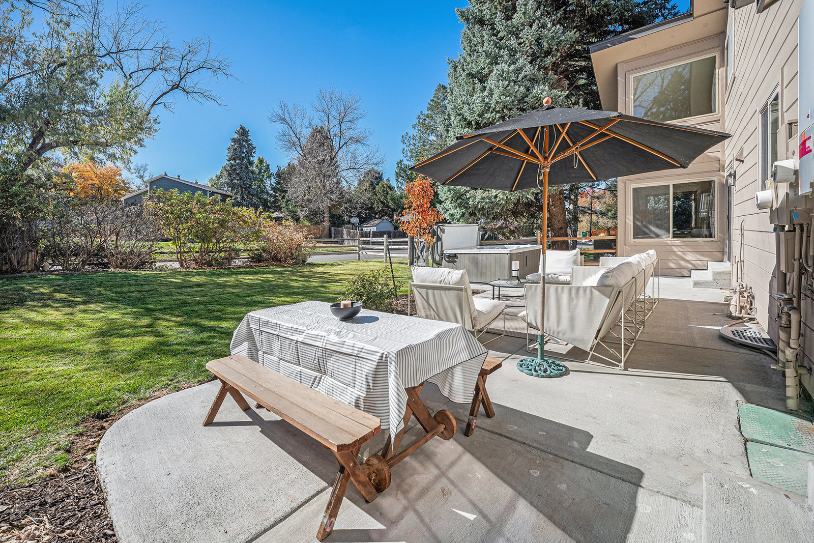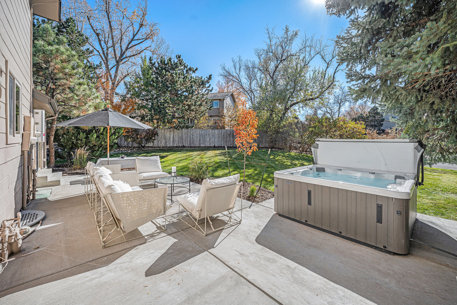 Stunning, Magazine worthy, Fully Remodeled Foxridge Home! This one-of-a-kind property has been completely updated inside and out with high-end finishes and thoughtful design. Features include smooth wall finishes on the main level and basement, newly refinished hardwood floors, new carpet, and soaring vaulted ceilings in the entry living and dining rooms. The open-concept kitchen boasts an oversized quartz island, premium appliances, and connects seamlessly to two living areas—both with fireplaces—and a wall of windows in the dining room. Also features a dedicated mudroom off garage entry. Upstairs offers 4 bedrooms and 2 updated bathrooms, including a vaulted primary suite with walk-in closet, large tiled shower, double vanity, and a serene balcony with new trex decking and metal railings. Upstairs has the laundry room of your dreams!! -very spacious with herringbone floors, built-in storage, and a desk. The finished basement includes space for a family room, game area, workout zone, plus a brand-new bathroom with a tile shower. Exterior upgrades include: fully paid solar panels, new roof, new landscaping on a large corner lot, with mature trees and a water feature, new concrete patio, and a large hot tub. Located in the desirable Foxridge neighborhood with parks, pool, trails, and top-tier access to DTC. Truly move-in ready and full of custom touches! Cherry Creek Schools