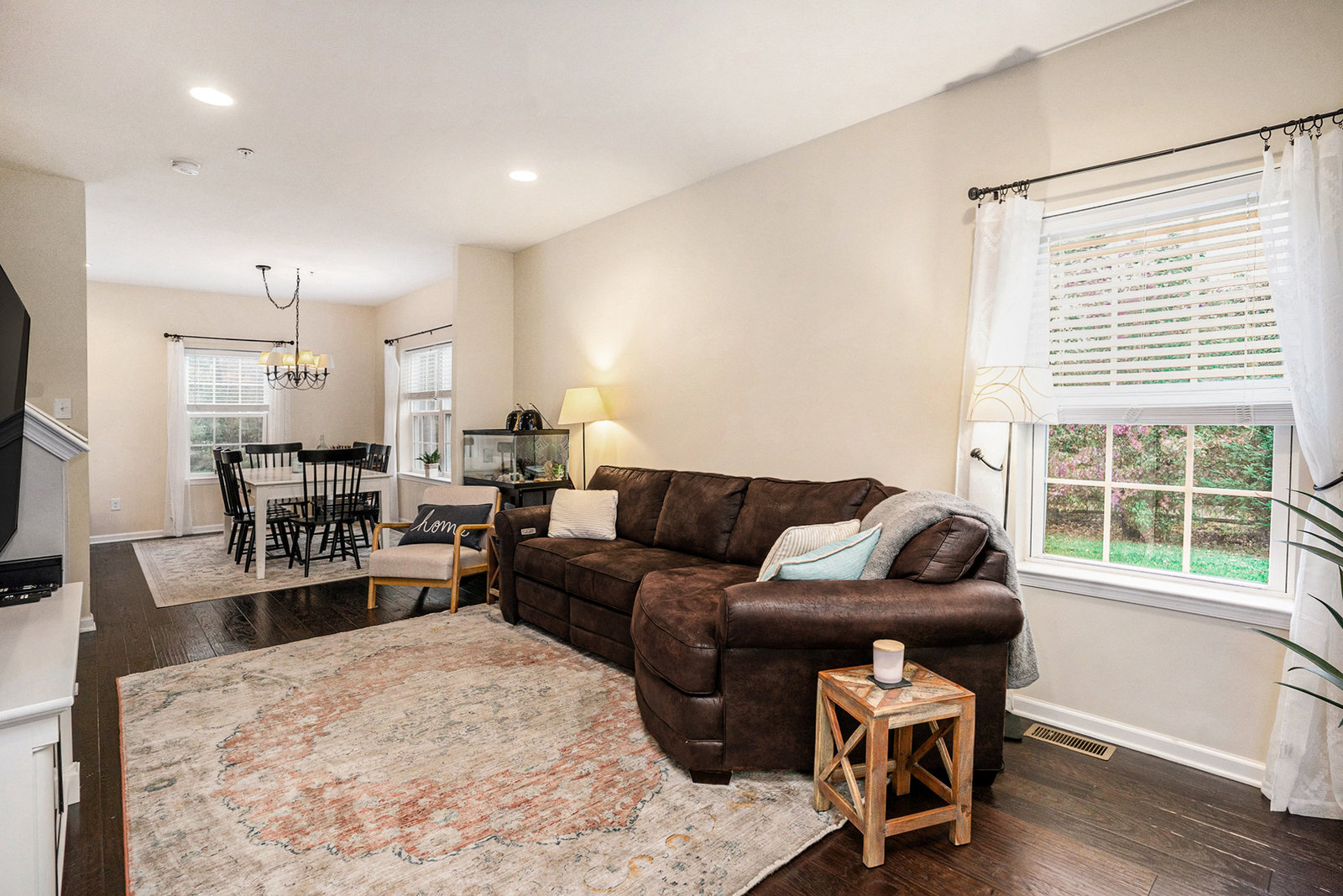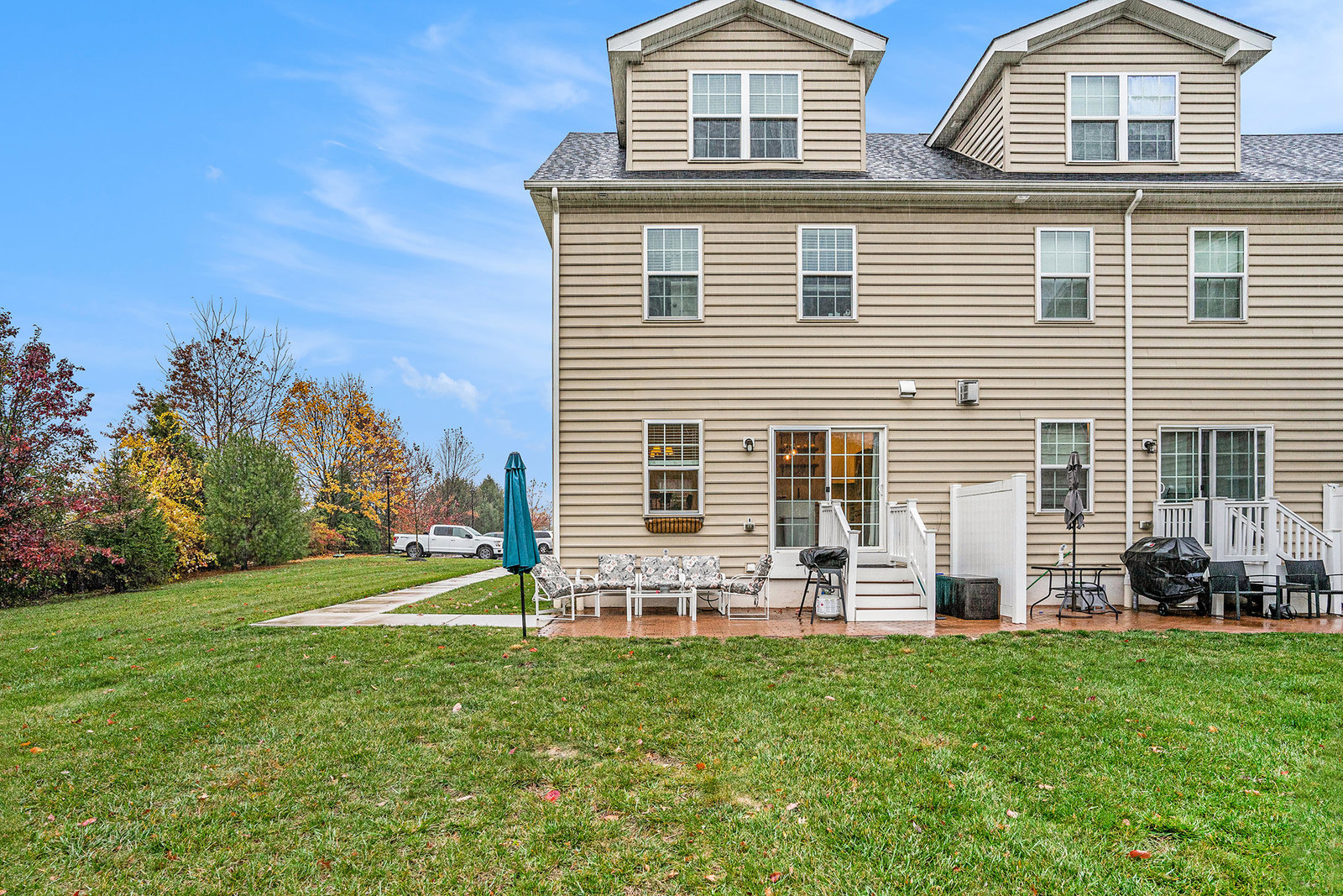 Welcome to this beautifully maintained end-unit townhome in the highly desirable Carriage Hill community! This bright and inviting 3-bedroom, 3.5-bath home stands out from the rest with its private backyard, a rare find in this development, and pet-friendly policy, making it perfect for anyone looking to bring their furry friend along. Bonus, it's situated on the edge of the community, adjoining a big farm, great for walking and enjoying the gorgeous scenery. You’ll love the open and spacious floor plan, ideal for both everyday living and entertaining. Enjoy 9’ ceilings, hardwood floors throughout the main level. There's a main floor powder room for guests you are entertaining in the light-filled Living Room. The kitchen is a true highlight, featuring 42” cabinetry, granite countertops, stainless steel appliances, a custom tile backsplash, and a large island for casual dining or meal prep. Step outside to your private patio and spacious backyard, perfect for grilling, relaxing, or letting pets play safely. Upstairs, the primary suite offers a walk-in closet and spa-like ensuite bath. Second Bedroom with walk-in closets and Full Bathroom. Third floor Bedroom with Full Bathroom as well! A versatile finished basement provides plenty of space for a media room, home office, or playroom. There's a large egress window for added peace of mind and safety for those enjoying this level. Basement laundry and storage abound. Live a ...
