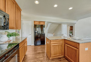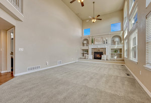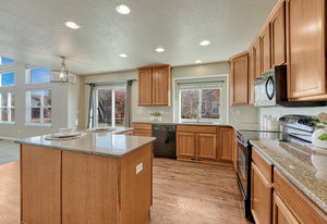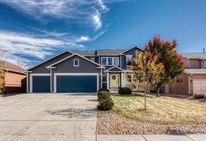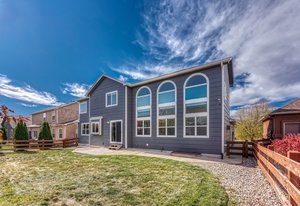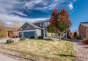 Discover this beautifully maintained two-story Classic-built home on a spacious fenced lot in desirable Barnstormers Landing. Ideally located near shopping, dining, and major employers—including Fort Carson, Peterson and Schriever Space Force Bases, Amazon, and the airport—this home offers both comfort and convenience. With easy access to I-25, downtown and all corners of the city are just minutes away. Step inside to an inviting two-story entry with grand ceilings and an elegant staircase. The open, light-filled layout flows effortlessly between the living and dining rooms, featuring hardwood floors, crown molding, and neutral paint tones throughout. The kitchen is a true centerpiece with granite countertops, ceiling-height cabinetry, and a window overlooking the backyard, seamlessly connecting to the dining and family spaces—perfect for gatherings. The adjoining family room impresses with 16-foot ceilings, a tile-surround gas fireplace, and built-in shelving that add warmth and style. Step outside to a beautifully landscaped backyard with an extended patio—ideal for entertaining, gardening, or relaxing on peaceful Colorado evenings. Upstairs, the primary suite offers a tranquil retreat with vaulted ceilings, a five-piece bath, and a walk-in closet. Two additional bedrooms and a full bath provide ample space for family or guests, while the loft landing overlooks the living area below. The finished basement adds a spacious second family room, guest bedroom with walk-in closet, and another full bath. The 3-car garage features an epoxy-coated floor, and the home includes a newer A/C for year-round comfort. Residents enjoy access to Barnstormers Park with a playground, basketball court, and open field—creating a true sense of community. This home combines an excellent location, thoughtful upgrades, and a welcoming neighborhood feel—making it the perfect place to call home.