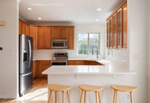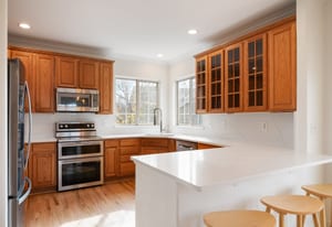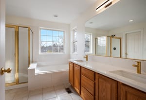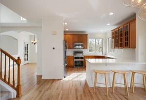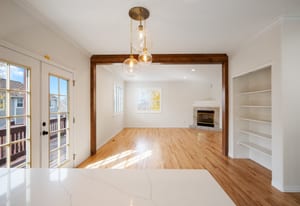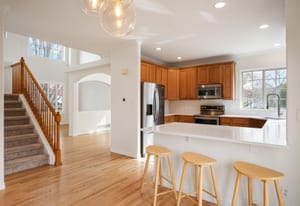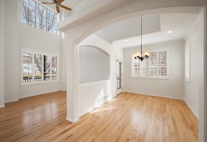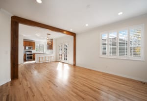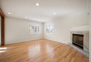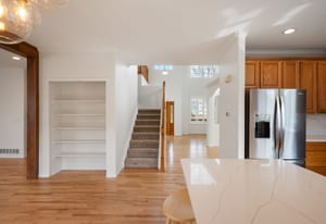 Step through the front door to discover an open, light-filled floor plan. The formal living and dining areas sit at the front of the home, ideal for entertaining. The updated kitchen offers quartz counters, abundant storage, a dine-in breakfast area, and space for casual dining. The adjacent living room centers around a cozy gas fireplace, newly refaced with quartz for a sleek, modern finish. A stylish powder bath features marble mosaic tile, a floating vessel sink, and accent lighting. The laundry room sits conveniently off the entrance to the spacious three-car garage.