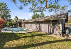 Tucked away on a quiet cul-de-sac in sought-after Frasier Meadows, this spacious ranch-style home presents a rare opportunity to create something truly special. Perfectly positioned for privacy yet close to everything Boulder offers, 325 Fox Court combines a premier location with exceptional potential. Set on a beautifully landscaped lot, the property features a heated in-ground pool, an impressive and rare four-car heated garage with built-in storage, and a fully fenced backyard designed for year-round enjoyment. Inside, a well-thought-out floor plan offers single-level living with a formal living and dining room, four bedrooms, and 2.5 baths. Vaulted ceilings and a wood-burning brick fireplace add character and warmth, while large windows and skylights bring in abundant natural light. The kitchen is equipped with stainless steel appliances-including a ZLINE six-burner cooktop, Whirlpool refrigerator, and KitchenAid dishwasher. The primary suite includes a walk-in closet, and the home benefits from dual HVAC systems, two attic access points, and a full-length crawlspace for convenient storage. Enjoy summer evenings on the covered patio, surrounded by mature trees and mountain-air tranquility. With easy access to Downtown Boulder, CU, and major commuter routes, this home offers a lifestyle of comfort and convenience in one of Boulder's most established neighborhoods. Popping the top may be possible. Property being sold "as is".