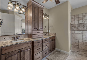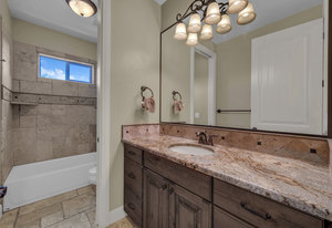 The interior layout balances open living with privacy, featuring a primary bedroom retreat with its own ensuite bath. Three additional bedrooms and two more full bathrooms ensure everyone has space and comfort. The home's quality construction is evident in every detail, from finishes to flow.