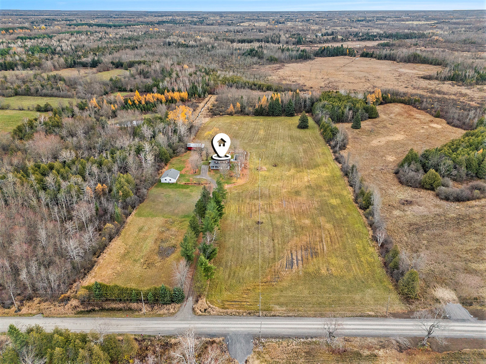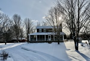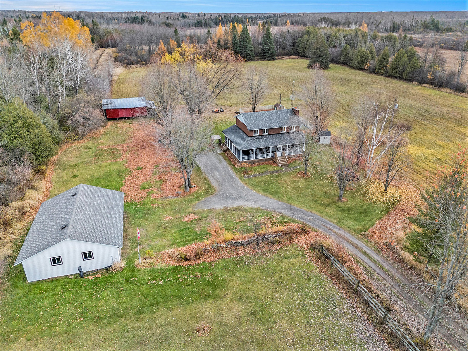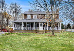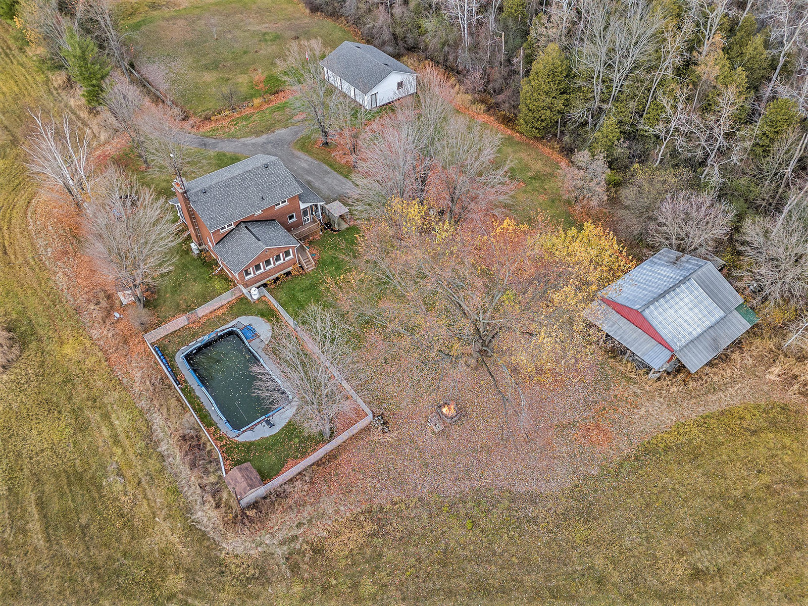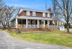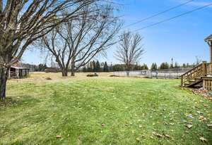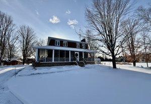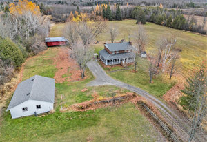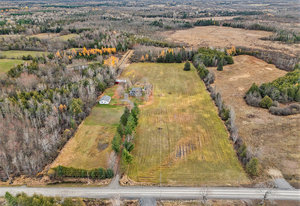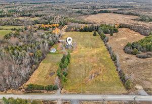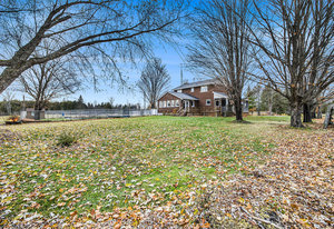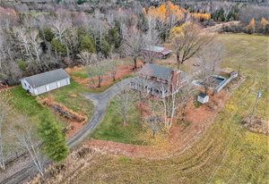 Discover this meticulously maintained 4-bedroom, 2-bathroom home nestled on 28 private acres at a fabulous price!!. Set back nicely from the road this exceptional property offers the perfect blend of country living & modern convenience, ideal for those seeking space & privacy & endless possibilities. The spacious interior of this wonderful home welcomes you with a cozy living room featuring a wood fireplace as well as a formal dining room. The well-appointed family room addition is a standout feature. You will love the European multi-function windows & the gas fireplace which adds warmth & ambiance, creating the perfect gathering space for your family & friends. The main floor includes convenient laundry facilities & a 2-piece bathroom. The 4 generous bedrooms & 4 pc bath on the 2nd level provide for comfortable accommodations. Step outside to the fabulous screened-in wrap-around porch, perfect for enjoying morning coffee & taking in the serene surroundings. A highlight of the outdoor space is the 18 x 36 in-ground pool with 8-foot deep end, completely fenced for safety. This property features a 3-car detached garage & an older pole barn, provides for ample storage for your vehicles, toys and workshop space. With 28 acres of land, this property presents incredible potential as a hobby farm. The expansive grounds offer plenty of room for your gardens & recreational activities. The substantial acreage also presents severance potential ...
