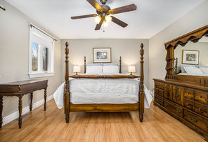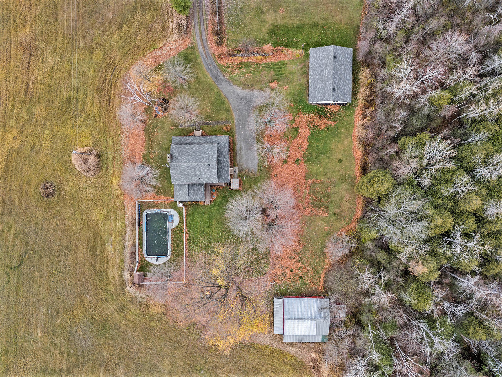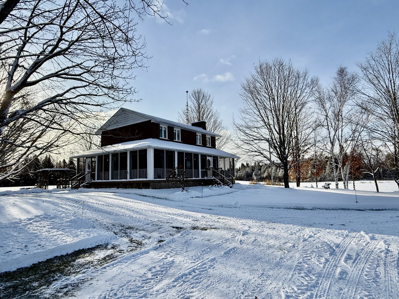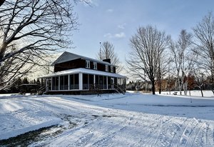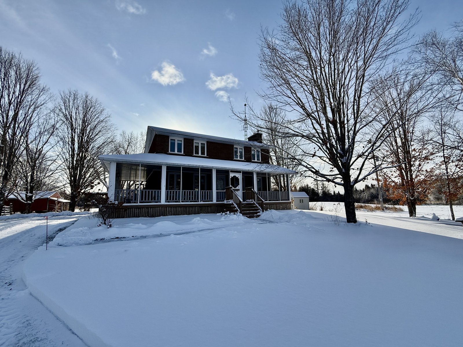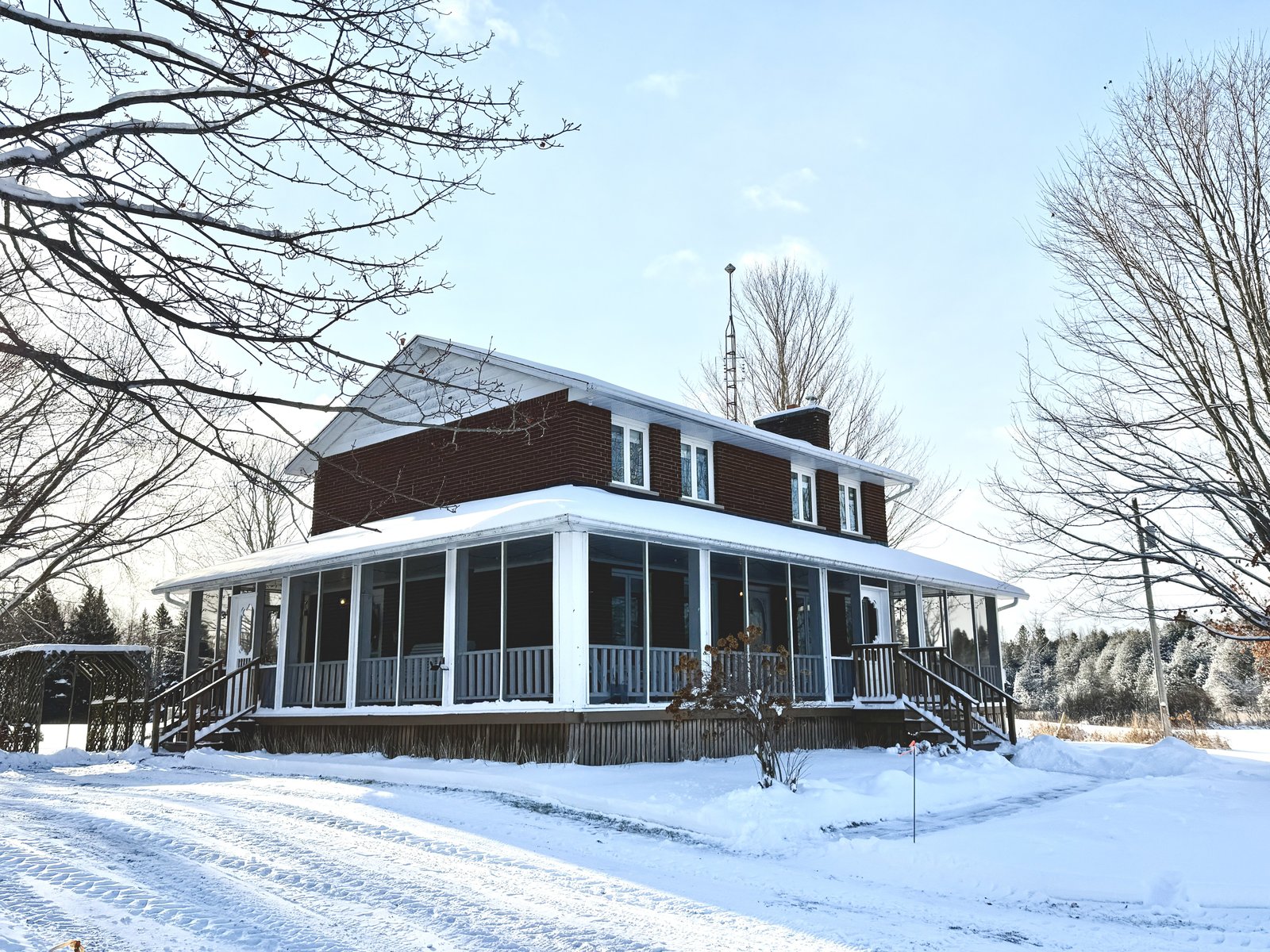 Discover this meticulously maintained 4-bedroom, 2-bathroom home nestled on 28 private acres at a fabulous price!!. Set back nicely from the road this exceptional property offers the perfect blend of country living & modern convenience, ideal for those seeking space & privacy & endless possibilities. The spacious interior of this wonderful home welcomes you with a cozy living room featuring a wood fireplace as well as a formal dining room. The well-appointed family room addition is a standout feature. You will love the European multi-function windows & the gas fireplace which adds warmth & ambiance, creating the perfect gathering space for your family & friends. The main floor includes convenient laundry facilities & a 2-piece bathroom. The 4 generous bedrooms & 4 pc bath on the 2nd level provide for comfortable accommodations. Step outside to the fabulous screened-in wrap-around porch, perfect for enjoying morning coffee & taking in the serene surroundings. A highlight of the outdoor space is the 18 x 36 in-ground pool with 8-foot deep end, completely fenced for safety. This property features a 3-car detached garage & an older pole barn, provides for ample storage for your vehicles, toys and workshop space. With 28 acres of land, this property presents incredible potential as a hobby farm. The expansive grounds offer plenty of room for your gardens & recreational activities. The substantial acreage also presents severance potential ...