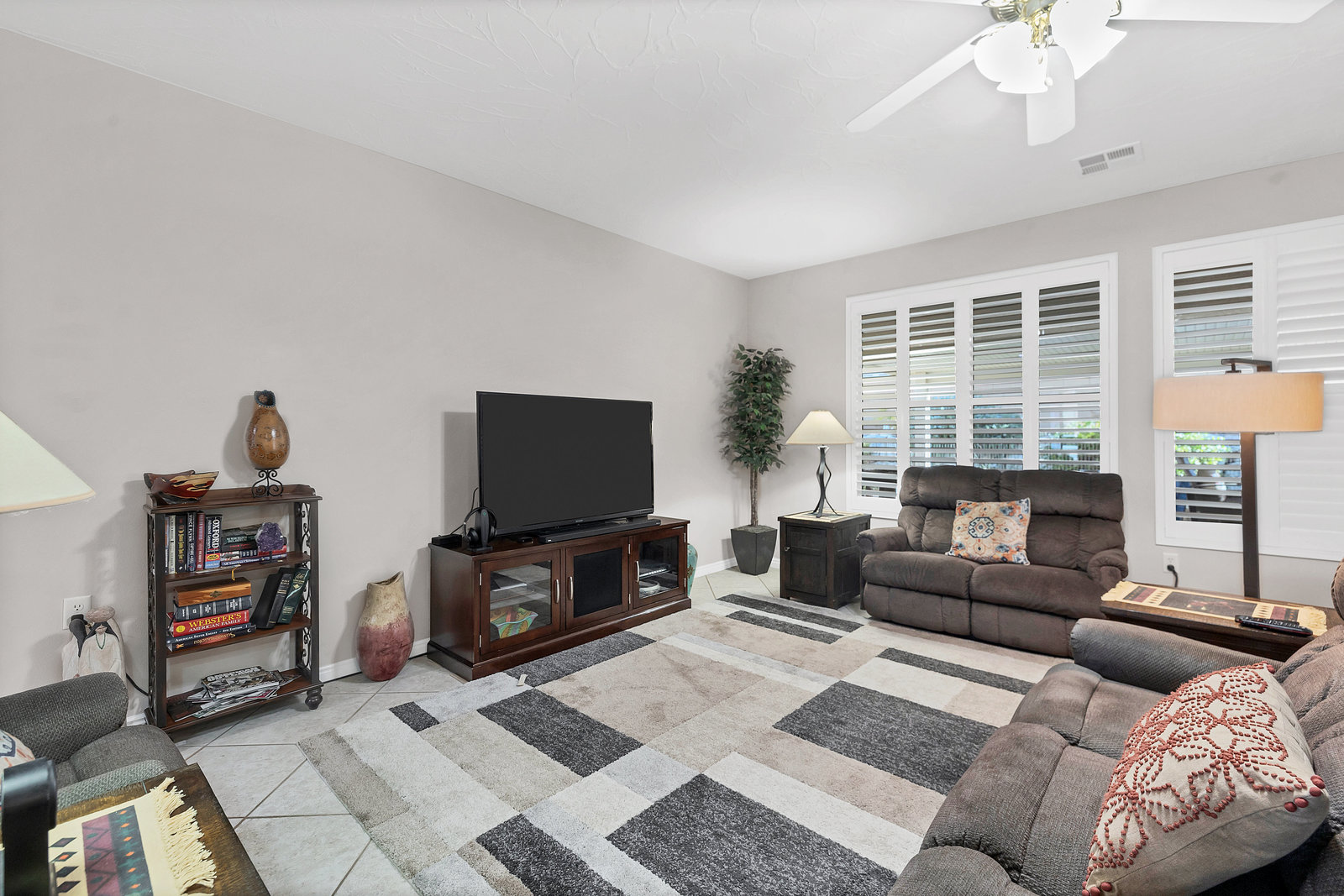 Welcome home to this charming residence offering two spacious bedrooms plus a versatile office. Thoughtfully designed with an abundance of cabinetry throughout, this home provides exceptional storage and organization options. New kitchen appliances and plantation shutters are a plus. Enjoy a peaceful and low-maintenance backyard with a new custom awning over the back patio, ideal for morning coffee or relaxing afternoons.