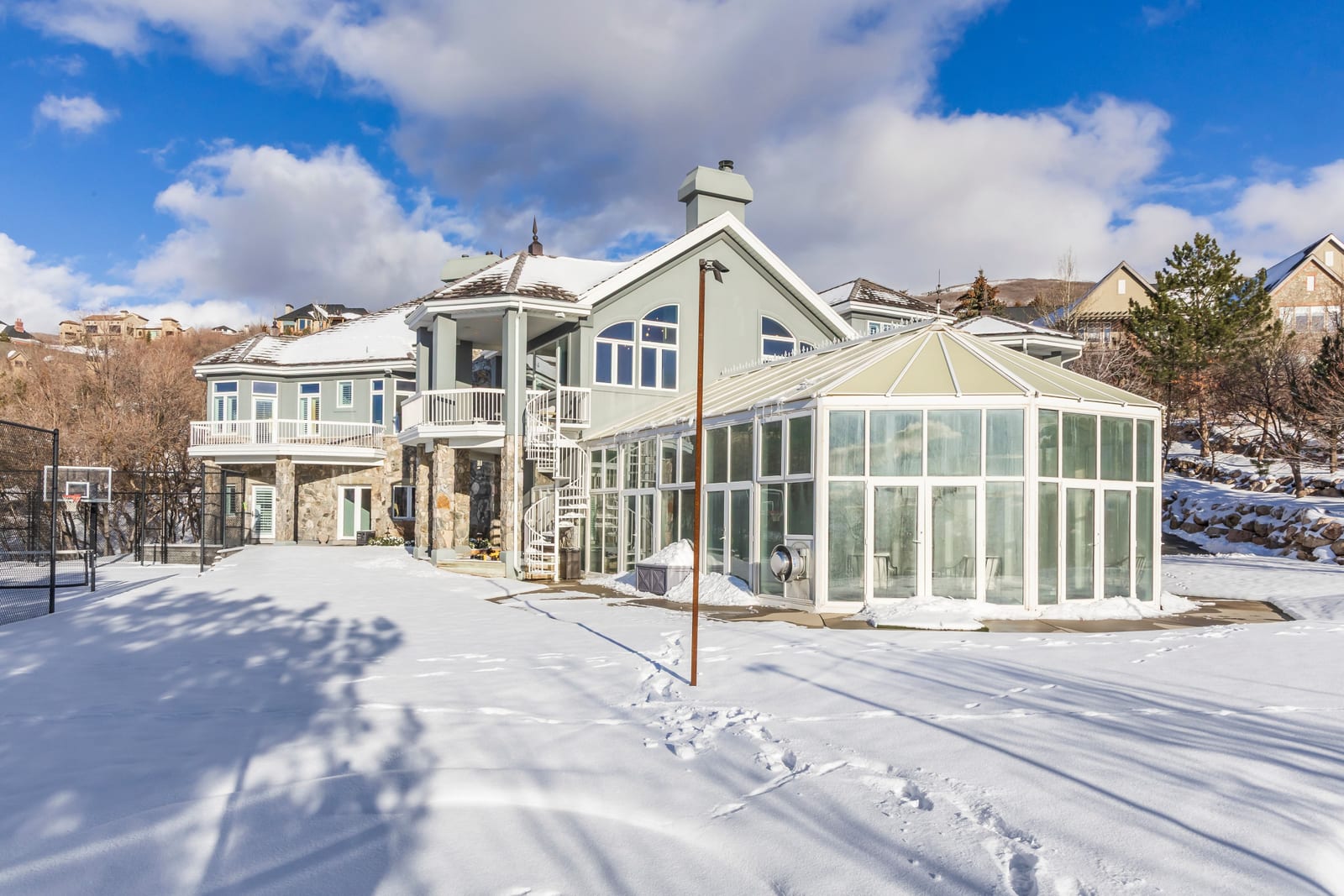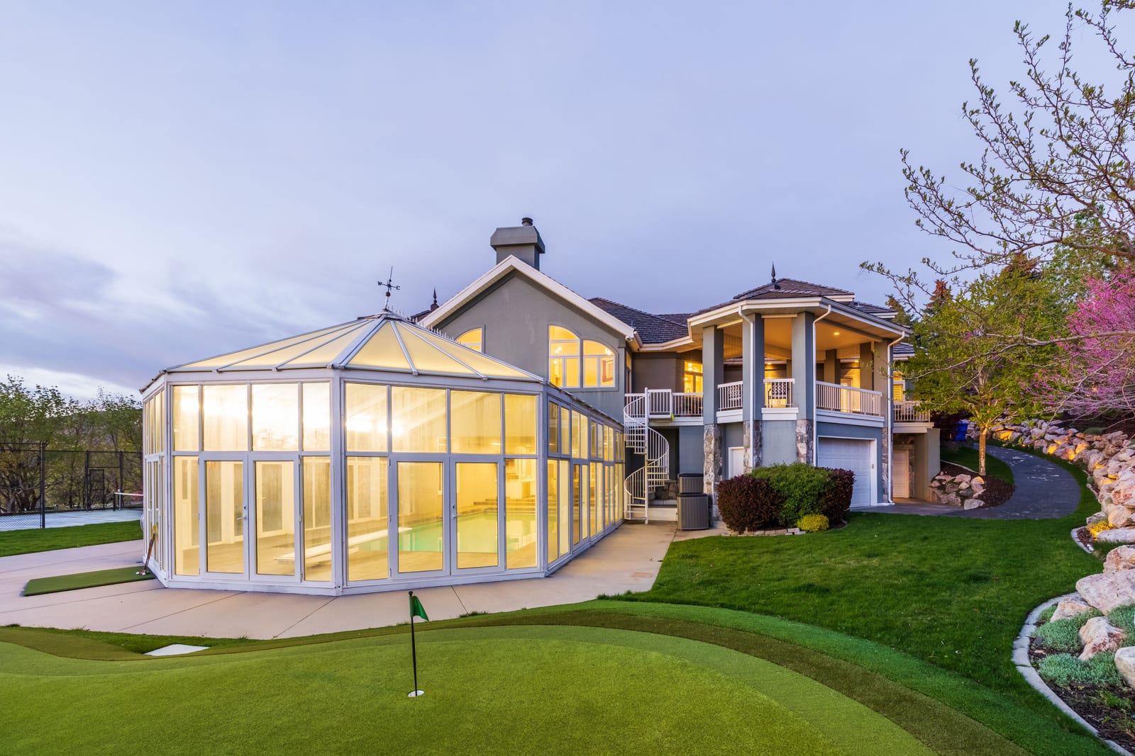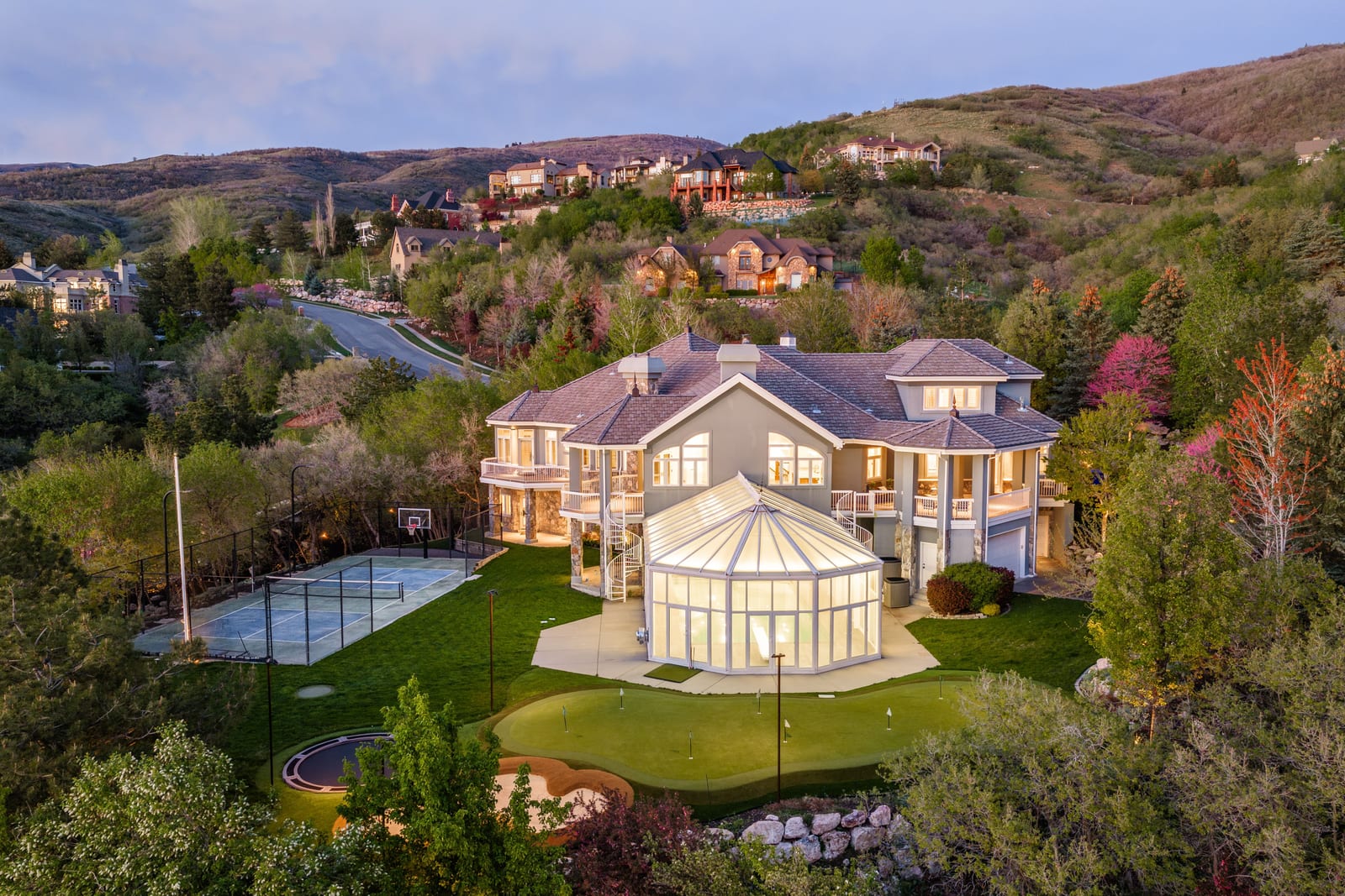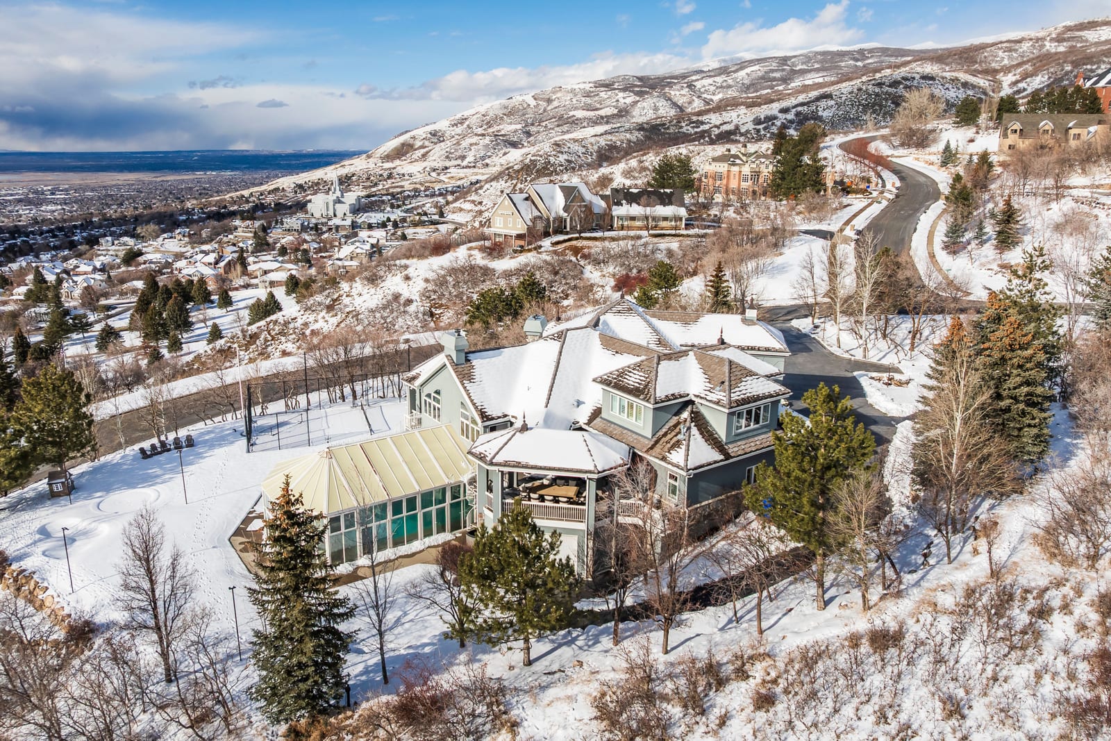 Experience an exceptional blend of luxury, recreation, and breathtaking scenery in this remarkable hillside estate. Situated on 1.29 acres, the property captures sweeping valley and mountain views that can be enjoyed from multiple expansive patios and decks, creating an ideal setting for both quiet relaxation and entertaining. One of the home's most distinctive features is the impressive indoor swimming pool area, complete with its own kitchen-designed to host gatherings year-round in comfort and style. The thoughtfully designed walk-out basement provides seamless access to the beautifully landscaped grounds, where you'll find a private pickleball court, a putting green, and a tranquil ...