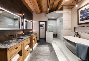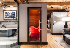 Enjoy a private rooftop deck with an outdoor kitchen featuring a gas grill, cooktop, and infrared steak grill—perfect for elevated entertaining. The serene primary suite includes a spa-style bathroom with sauna and a custom closet with a built-in safe.