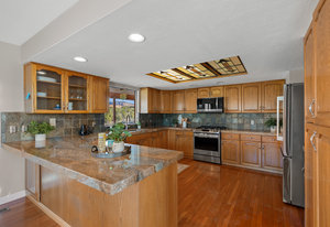 Inside, you’ll find 3 spacious bedrooms, 2.5 baths, and a thoughtfully designed layout offering three distinct living and family rooms, a formal kitchen with granite countertops, tile accents, and updated appliances. Gorgeous hardwood floors, two gas fireplaces, and abundant natural light add to the home’s timeless charm.