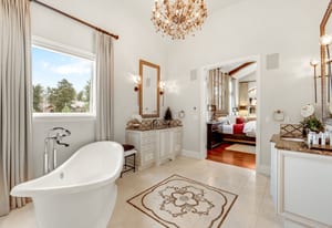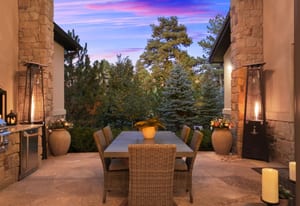 Envision arriving home to this opulent estate in Pinon Soleil, gracefully set among majestic 100-year-old pines. Designed by a renowned architect, this bespoke residence sits on a pristine acre, offering sweeping views, exceptional privacy, and a setting that harmonizes beautifully with its natural surroundings. Soaring ceilings, rich wood accents, and meticulously curated architectural details define an atmosphere of timeless luxury throughout. Expansive windows frame forested vistas and natural light throughout, creating a serene retreat that feels both grand and welcoming year-round. A distinguished main-level study welcomes you with quiet authority, featuring custom wood paneling, intricate flooring, dramatic ceiling heights, and its own fireplace. The great room unfolds in grand fashion, anchored by a striking fireplace and seamlessly connecting to the chef-inspired kitchen and outdoor living spaces. The kitchen blends culinary excellence with architectural beauty, showcasing Wolf, Sub-Zero, Thermador, and Bosch appliances, along with refined wood, marble, and granite finishes. A spacious butler’s pantry enhances functionality, while a 500-bottle wine cellar with a dedicated tasting room offers a gallery-like experience for collectors. The main-level primary suite is a private sanctuary, highlighted by a fireplace, vaulted beamed ceilings, and a spa-inspired bath with heated floors and a sculptural soaking tub. All five bedrooms feature private en-suites, while six fireplaces and lofty ceilings throughout add warmth and architectural presence. Outdoor living is elevated by a covered patio with a full kitchen and 85-inch Seura outdoor television. Savant smart-home technology, a heated-tile porte-cochere, circular drive, over $500,000 in custom landscaping, and a finished four-car garage complete this exceptional offering. Ideally located in Castle Rock with immediate access to I-25, shopping, and premier amenities, this residence defines Colorado luxury living.