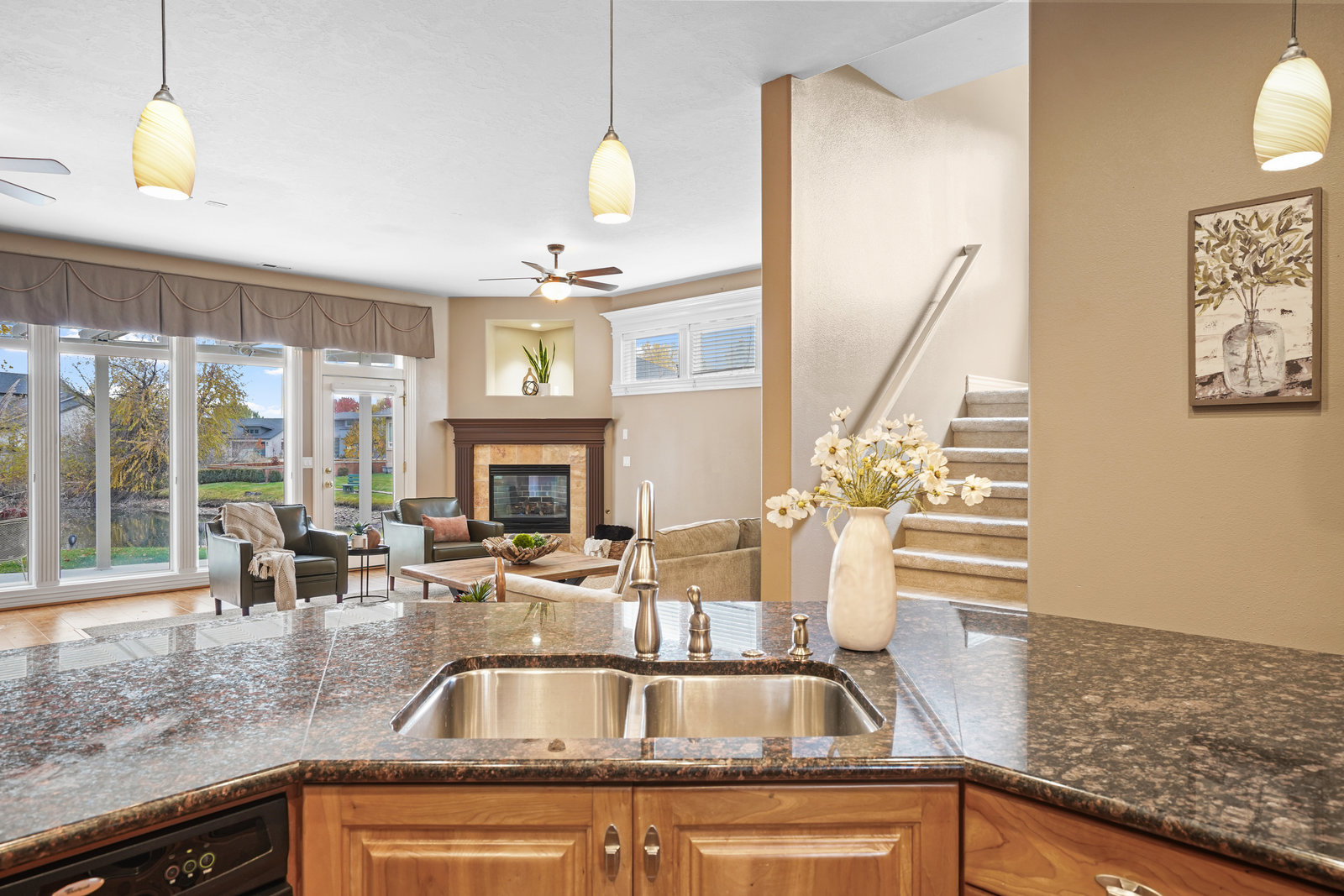 Morning light dances across the water as the day begins — coffee poured, windows open, the quiet satisfaction of a home that feels right the moment you arrive. This inviting residence offers desirable main-level living with two bedrooms and two bathrooms on the main floor, anchored by an open, flowing floor plan that invites conversation, connection, and easy gatherings.