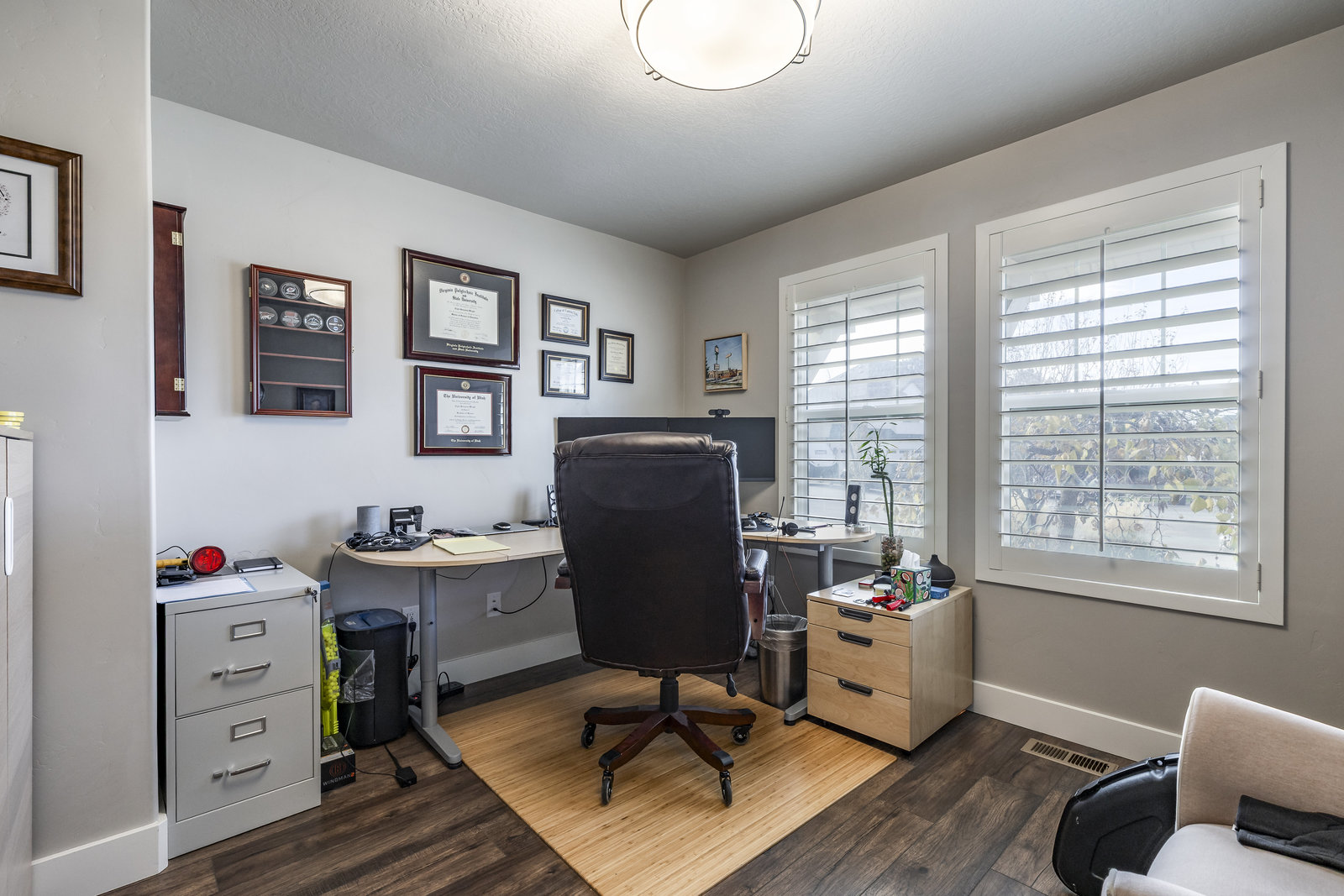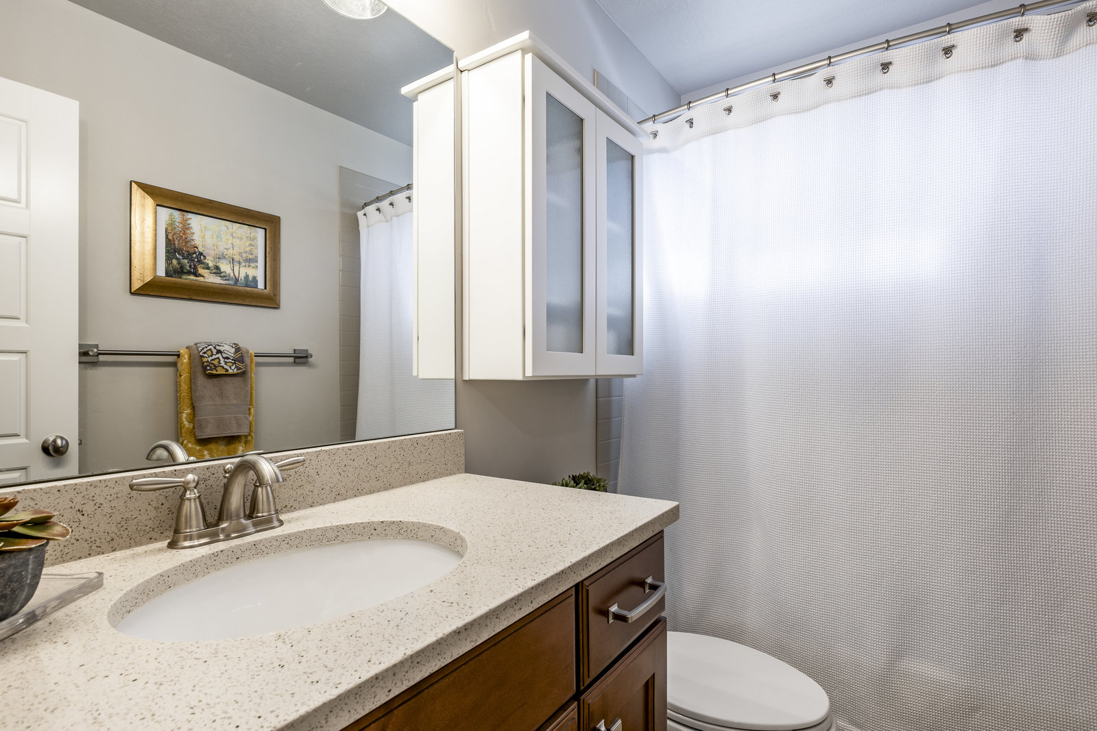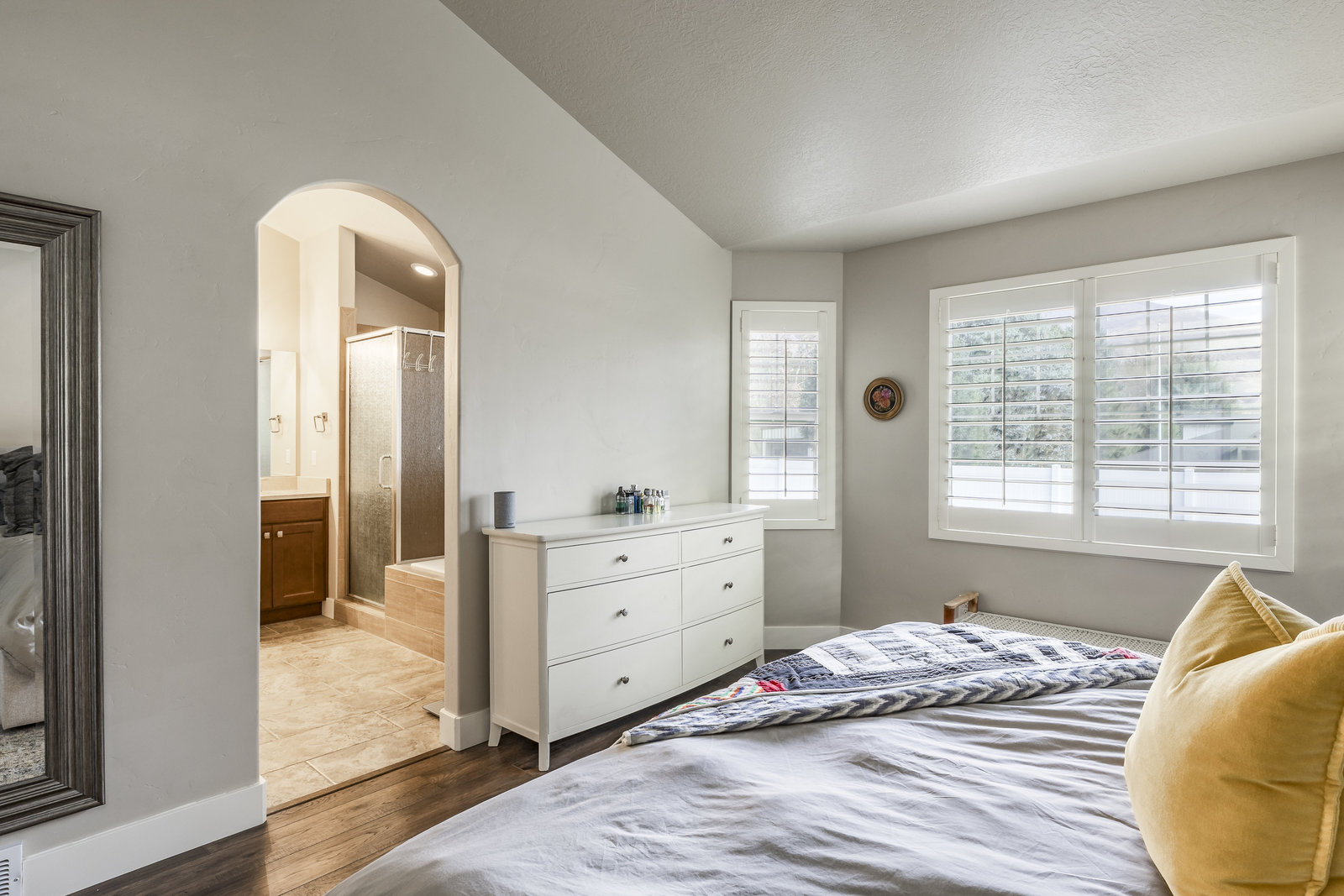 Welcome to Silver Hollow Drive in Farmington - a beautifully maintained rambler nestled on a quiet cul-de-sac with stunning mountain views. This home offers exceptional privacy and a meticulously landscaped yard that's perfect for relaxing or entertaining. Step inside to an open, light-filled floor plan featuring plantation shutters throughout. The great room and adjoining kitchen are a standout with custom cabinetry, granite countertops, an island, double oven, and a convenient pantry-ideal for cooking and gathering. The inviting Primary Suite provides a peaceful retreat with walk-in closet, dual vanity, tub and separate shower. The main-level den with French ...