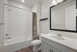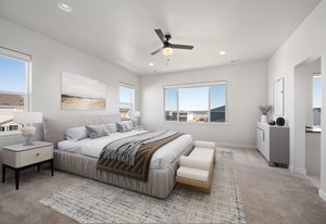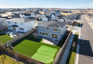 This four year old home offers incredible value and excellent curb appeal on a nearly 10,000 square foot corner lot in one of Parker’s emerging, amenity packed neighborhoods. Spread out in five bedrooms and five full bathrooms, this property includes a convenient main-floor bedroom with a full bath that also works beautifully as a sunlit office (See floor plans at the end of photo queue). The open main level features a spacious kitchen with stainless steel appliances, gas range, double ovens, a huge quartz island, and a walk-in pantry, flowing into the spacious dining and living areas complete with a gas fireplace. Upstairs, a bright loft with mountain views provides extra living space, along with a luxurious primary suite offering split vanities, a spa-like walk-in shower, and a massive closet. A dedicated laundry room is also located on the upper level. The finished basement gives you room to spread out with a ton of room for a home gym, entertainment space, guest suite or all three. Outside, enjoy a low-maintenance turfed backyard with a putting practice green. Additional highlights include a 3-car garage, dual-zone HVAC, solar, and a gas line for grilling. All within the amenity-rich Trails at Crowfoot community featuring parks, trails, pool, and sports courts. Come see why Hop Clover is one of the best options currently on the market in Parker!