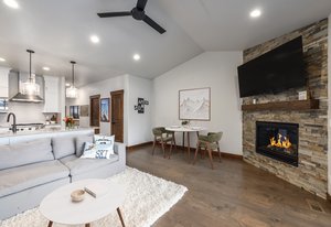 As the sun sets over the ridgeline of Park City, the light pours through west-facing windows, bathing the living room in gold. Your evening begins on the covered deck, drink in hand, taking in one of the best views in the entire Black Rock Ridge community as you watch the ski slopes light up in the alpenglow. M Real hardwood floors guide you into a kitchen designed for both form and function, with rich wood cabinetry, granite countertops, and a sleek gas range. Fresh pendant lighting sets the tone while you brew your coffee and watch the mountain skyline shift with the sunrise. In winter, you return from the slopes and step into a fully finished garage; epoxy floors clean and durable, with dedicated storage for skis, boards, and boots. In the primary suite, the steam shower awaits, turning your post-ski ritual into a spa experience. With three bedrooms and a theater room, the layout flexes easily for hosting or relaxing. Everything is thoughtful, from vaulted ceilings that elevate the great room to the quiet privacy of your patio-level hot tub under the stars. Black Rock Ridge's central location allows its residents and guests to enjoy all