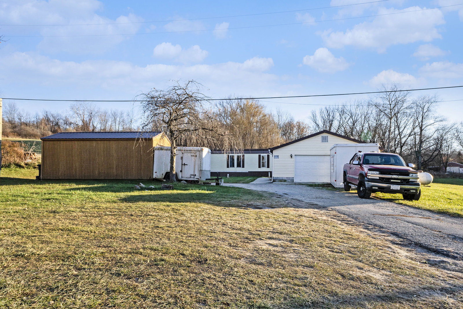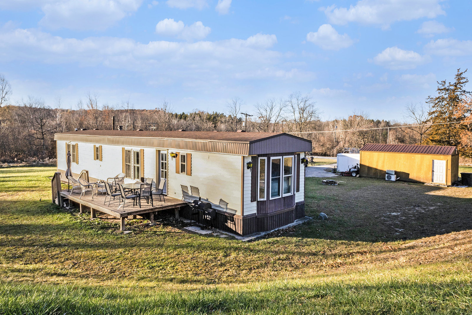 Experience peaceful country living with this well-maintained 2 bedroom, 2 full bath manufactured home, ideally situated on just under 4 beautiful acres in the highly acclaimed Lowell School District. Offering privacy, space, and exceptional value, this property is perfect for anyone seeking a quiet retreat with room to grow. The bright, open floor plan features a spacious living area, a functional kitchen with great storage, and two comfortable bedrooms—each with its own full bathroom for added comfort. The primary suite provides a relaxing escape with its private bath, while the second bedroom is perfect for guests, family, or a home office.Outside, the property truly shines. An oversized two-stall garage offers ample room for vehicles, tools, and hobbies, while an additional storage shed provides even more space for outdoor gear or equipment. Nearly 4 acres of level, usable land gives you endless possibilities—gardens, animals, a future pole barn, or simply enjoying the peaceful natural setting. Conveniently located in award winning Lowell Schools, just minutes from Lowell’s shops, dining, and charming downtown, with easy access to Grand Rapids, this home delivers the perfect blend of rural tranquility and everyday convenience. Don’t miss your chance to own affordable acreage in one of West Michigan’s most desirable school districts!