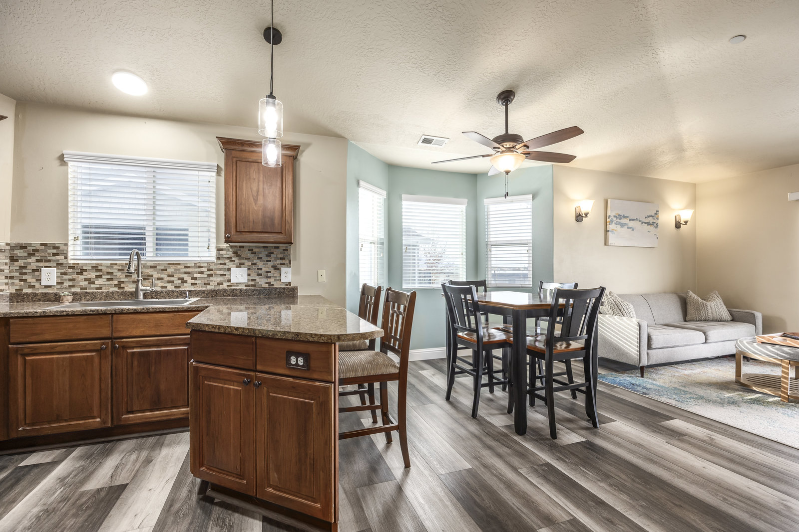 Low-maintenance living in the heart of Sandy! Enjoy stunning mountain views from this top-floor condo filled with natural light. This 3-bed, 2-bath layout is perfect for a growing family, roommates, or anyone needing an in-home office. With newly replaced carpet and updated LVP flooring throughout, this home is truly turnkey.