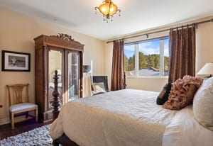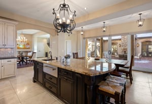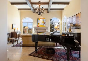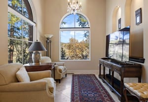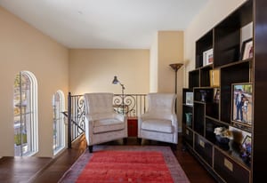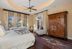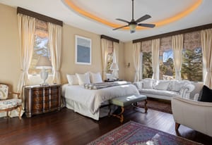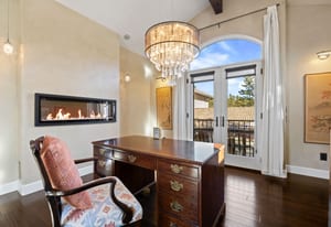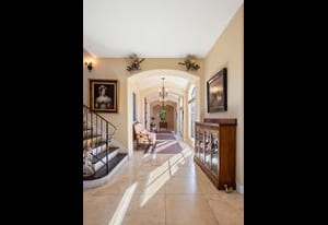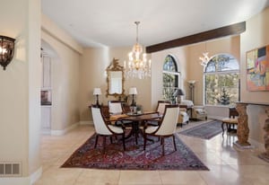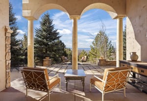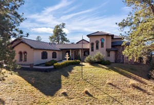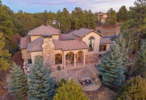This stunning home evokes a Mediterranean Villa, designed with elegance and meticulous attention to detail. Its old-world architecture blends seamlessly with the natural surroundings, creating an ideal indoor-outdoor living experience. At the heart of the home is a breathtaking open-air courtyard, complemented by a grand front entrance and an expansive back patio with an outdoor kitchen and sweeping mountain views. Inside, the home is perfectly suited for luxury living and entertaining, featuring a gourmet kitchen with a chef’s prep pantry, wine room, home office, and spacious living areas and bedrooms. Elegant arched doors open to a grand foyer with a vaulted groin ceiling and porcelain tile floors leading to the courtyard. The Great Room showcases tall, beamed ceilings, a cozy fireplace, and large arched windows framing the mountain scenery. A brick-arched hallway leads to a charming wine cellar with a tasting area and wet bar. The primary suite is a serene retreat with tall windows, soft lighting, courtyard access, and a luxurious bath with double vanities, marble countertops, a walk-in shower, jetted tub with fireplace, and a custom-lit walk-in closet. Upstairs, two additional bedrooms share a three-quarter bath. Outside, mature trees and subtle landscape lighting create a private, tranquil setting against the stunning mountain backdrop!