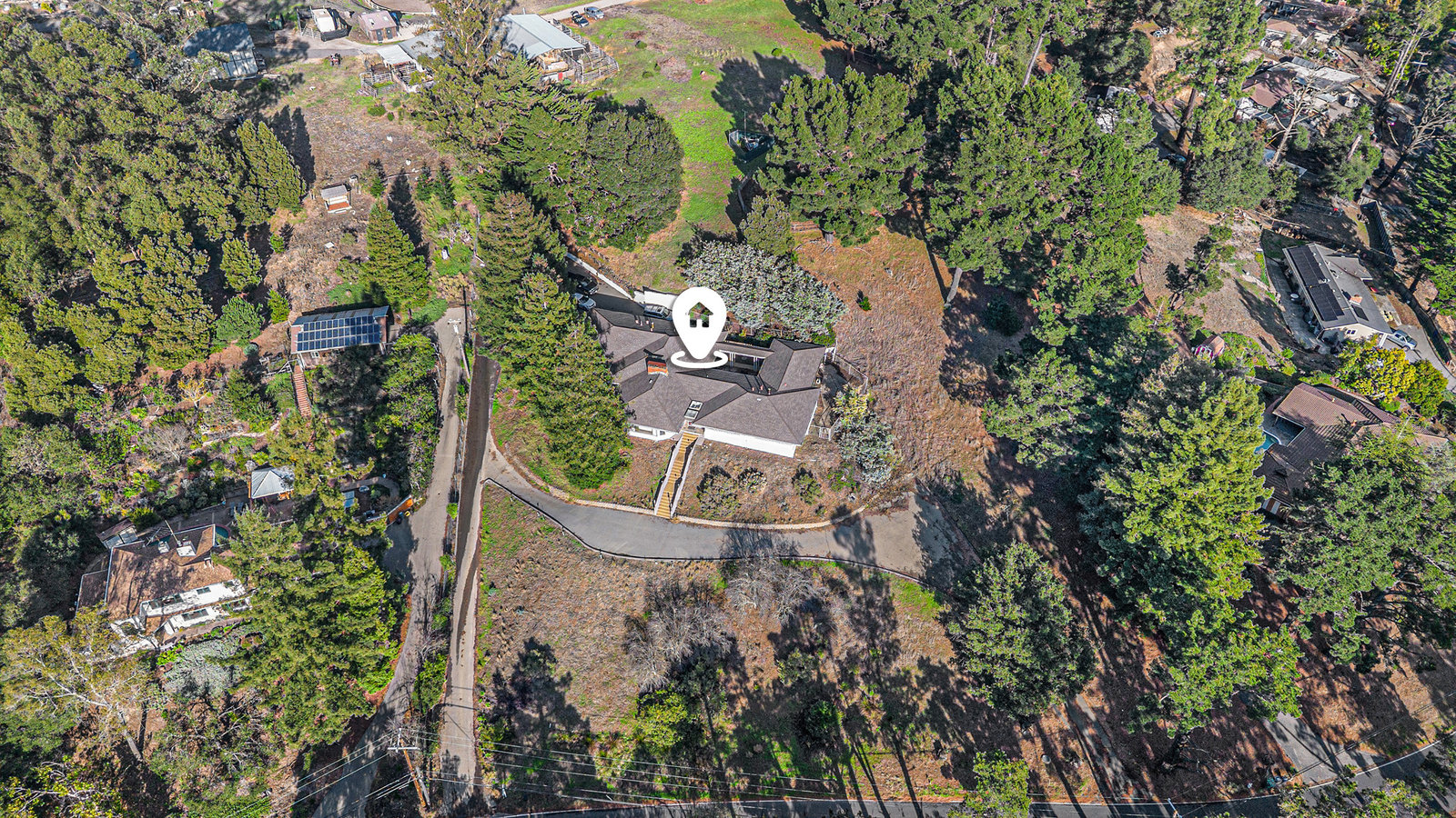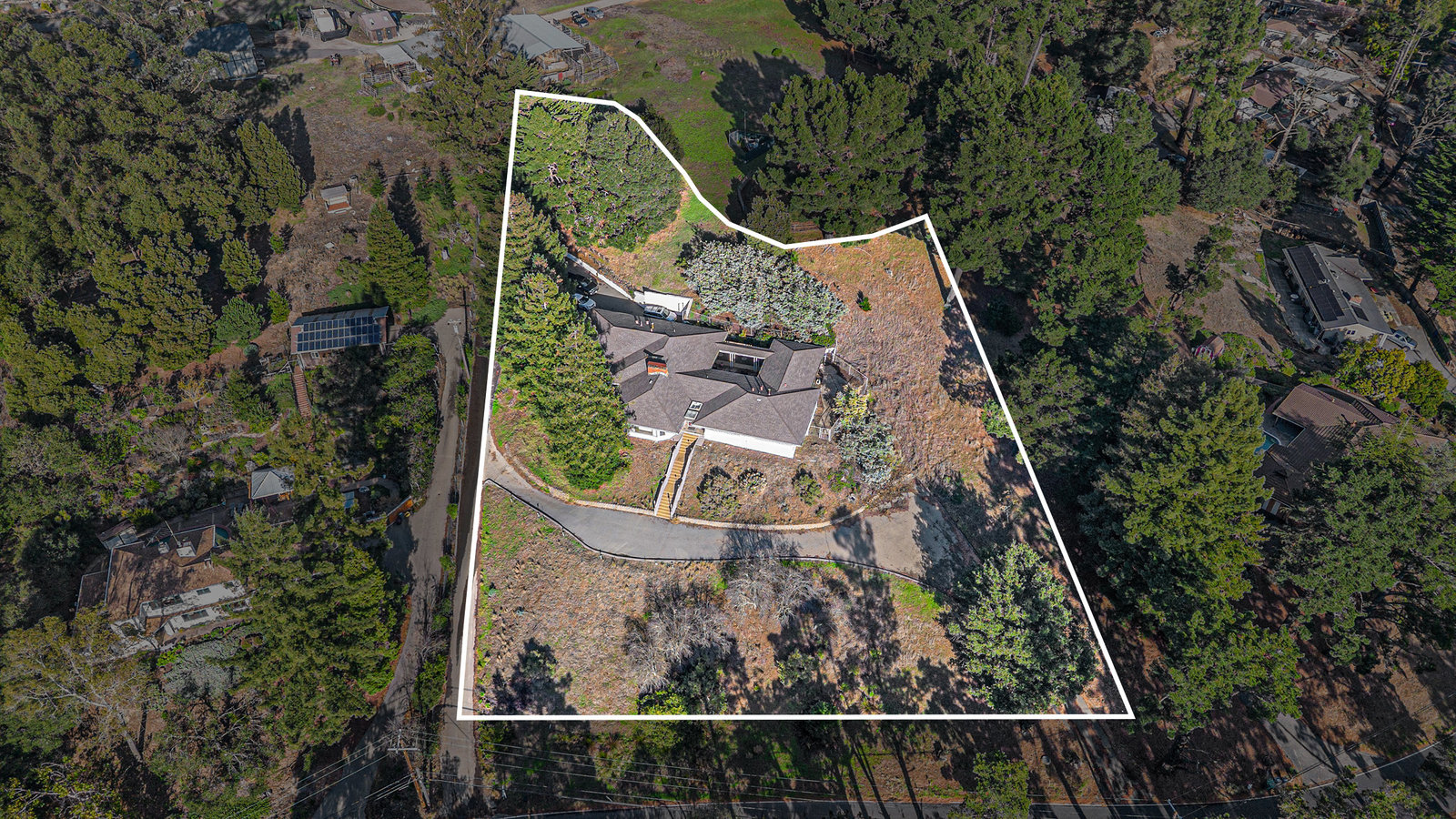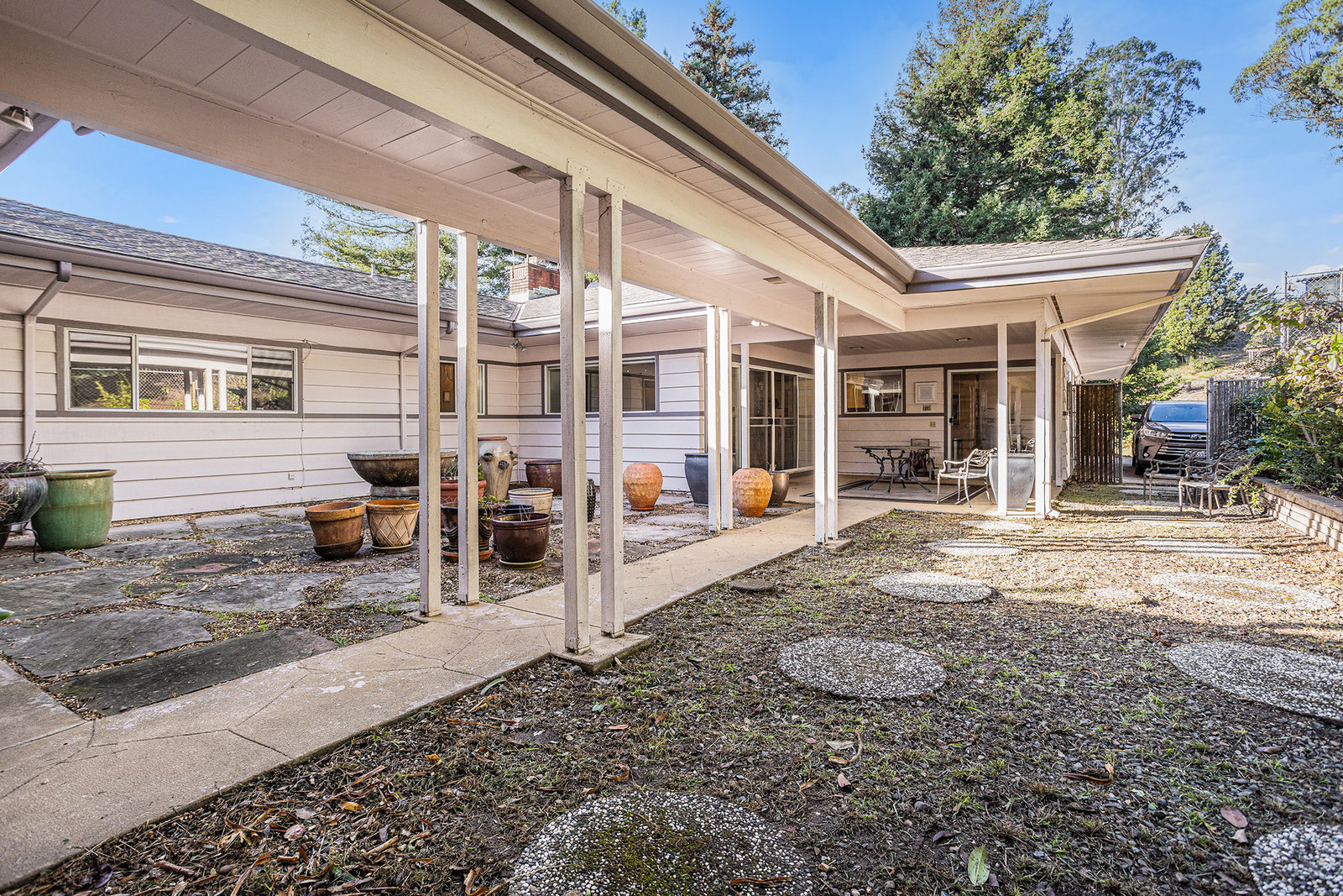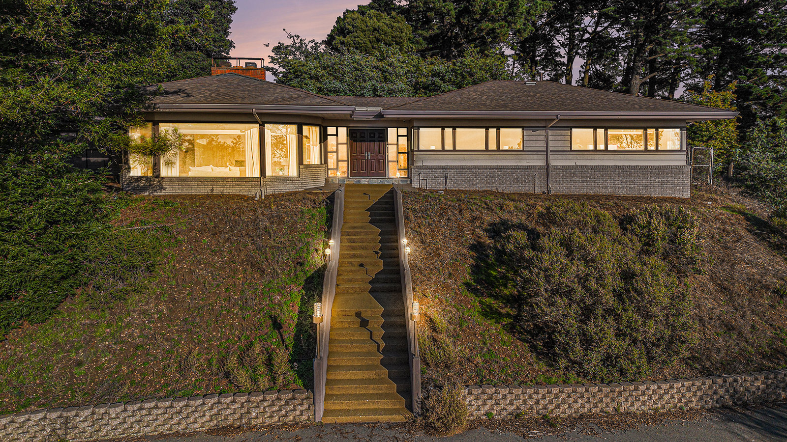 Mid-Century Modern with San Francisco Skyline Views Private and serene, this striking mid-century home sits on a secluded one-acre lot with sweeping views of the San Francisco skyline, city lights, and Bay. Offering 3,181 sq. ft., the home features 4 spacious bedrooms, including a guest bedroom with ensuite bath, plus a luxurious primary suite with marble tile, double pedestal vanity, and a sunken jetted tub. Designed for easy indoor-outdoor living, the home includes a light-filled living room with wood-burning fireplace, a family room with second fireplace, formal dining room, and a courtyard accessible from the kitchen and family room, with a breezeway to the primary suite. Property highlights include two full baths, two half baths (one in the garage), 2 driveways with additional parking for several cars. Close to regional parks, trails, Skyline High School, and more, this home offers the perfect blend of mid-century character, privacy, and Bay Area convenience. Owners have lived here for 53 years, so bring your design ideas to take it to the next level!