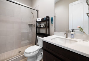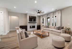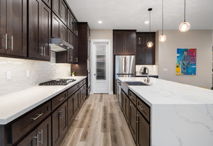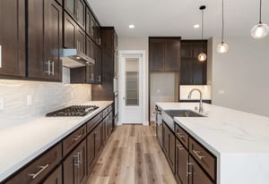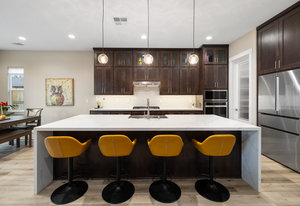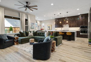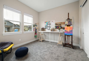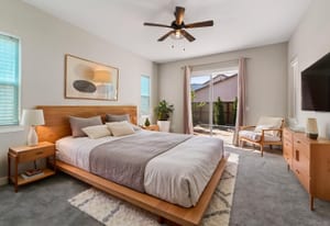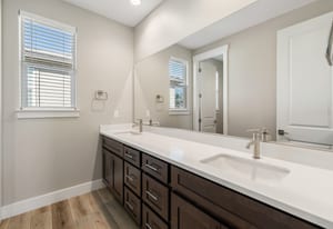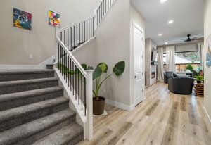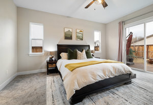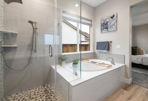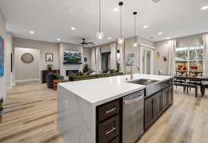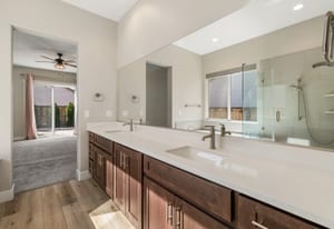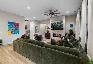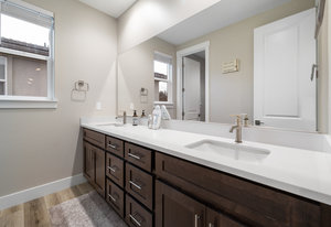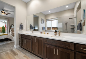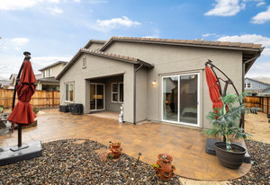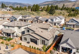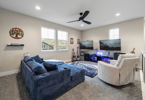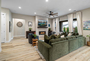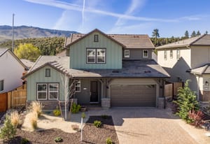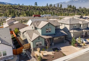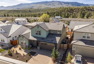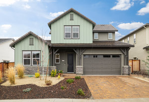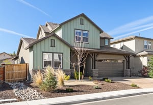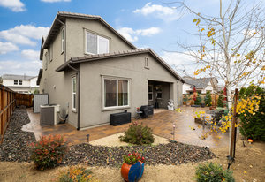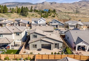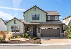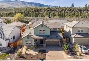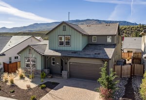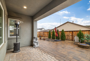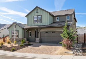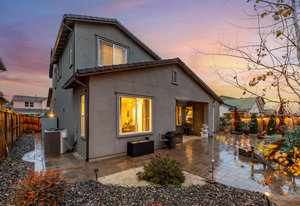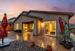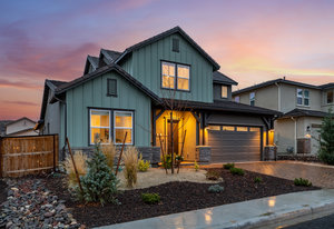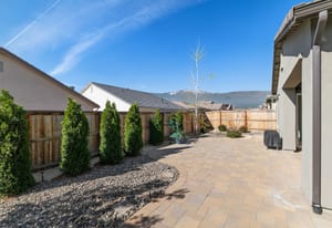 Beautiful and elevated Plan 4 home in Verdi, with a clean modern aesthetic and mountain views. The layout includes two main-level bedrooms including the primary, creating flexibility for guests, office space, or multigenerational living. Interior upgrades include a waterfall island in the kitchen, custom backsplash, coffee bar nook, complemented by ceiling-height cabinetry and luxury wide plank flooring throughout the main spaces. The living room features a floor-to-ceiling tiled fireplace with a mantel and vaulted ceilings. Ease of maintenance in the back outdoor space is accented by a full paver patio with xeriscaping. Propane stub available for a future outdoor kitchen if desired. A tankless ...