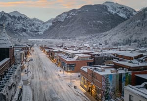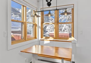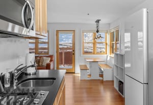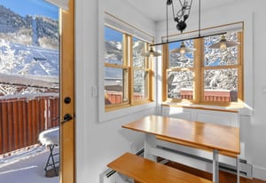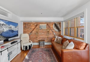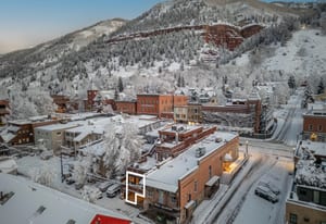 Downtown Alpine Refuge: a refined one-bedroom retreat in the Lorenz Building offering south-facing light, timeless brick accents, and the rare privilege of authentic downtown Telluride living. The residence's open living and dining area is framed by two sides of glass, creating a bright, inviting space that flows seamlessly onto a private deck, capturing the surrounding alpine atmosphere.Designed for comfort and convenience, the property includes designated covered parking and a separate storage room for gear. From this premier location, world-class skiing, trail networks, dining, cafes, and Telluride's signature cultural events are all within easy reach, providing an exceptional blend of access, lifestyle, and in-town rarity.